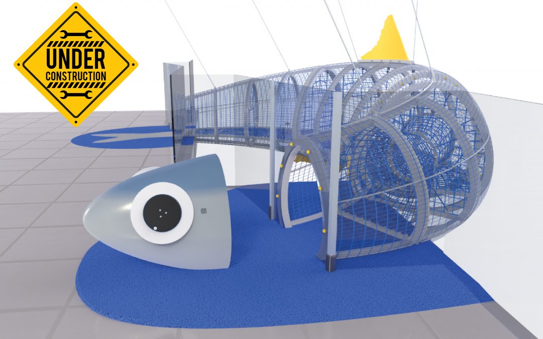 O seu focinho pontiagudo encontra-se fixo à laje, e contempla 2 equipamentos interactivos. Ao rodar os olhos do biqueirão será produzido conteúdo áudio e será libertado também um surpreendente aroma a maresia, sem qualquer recurso a energia elétrica.