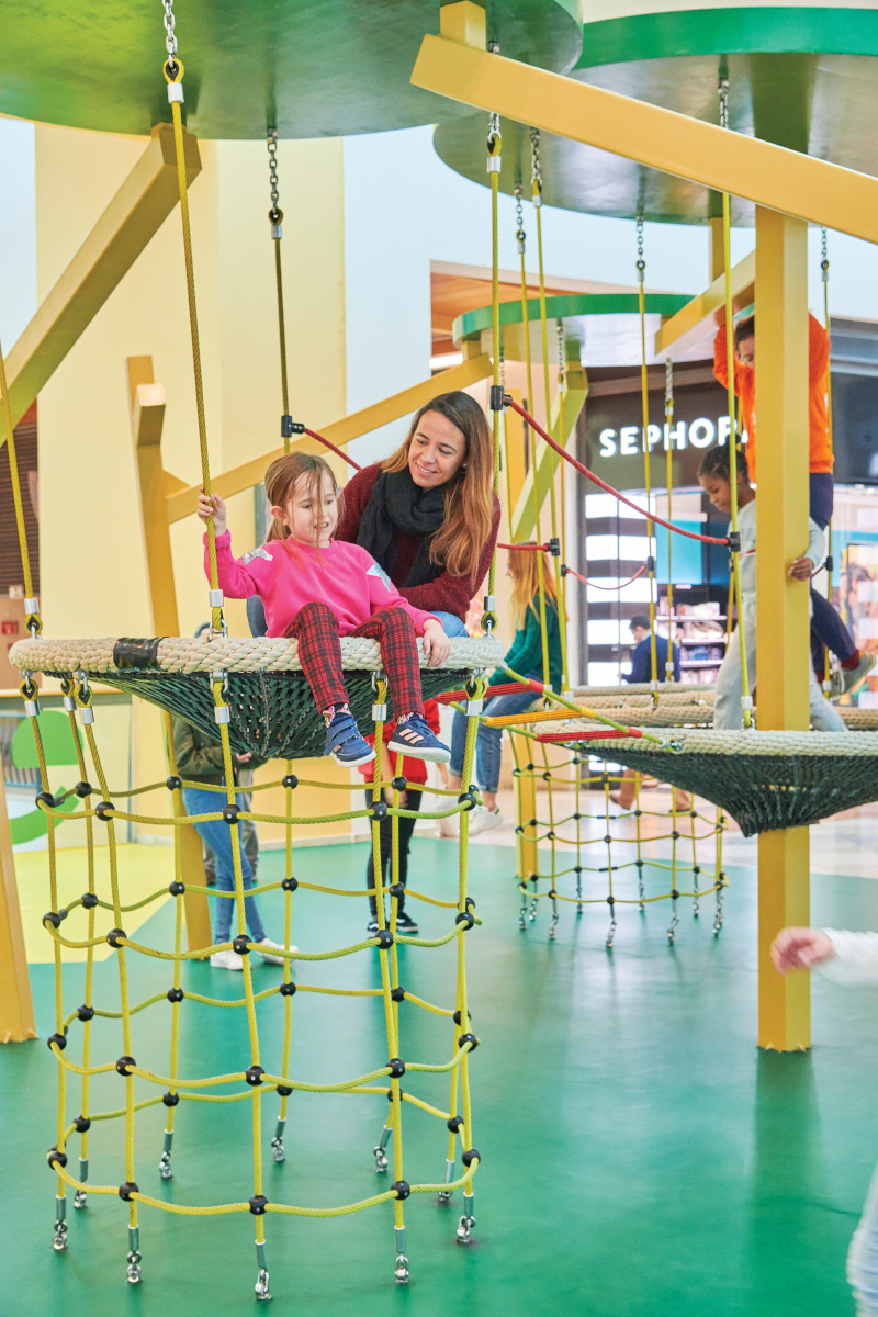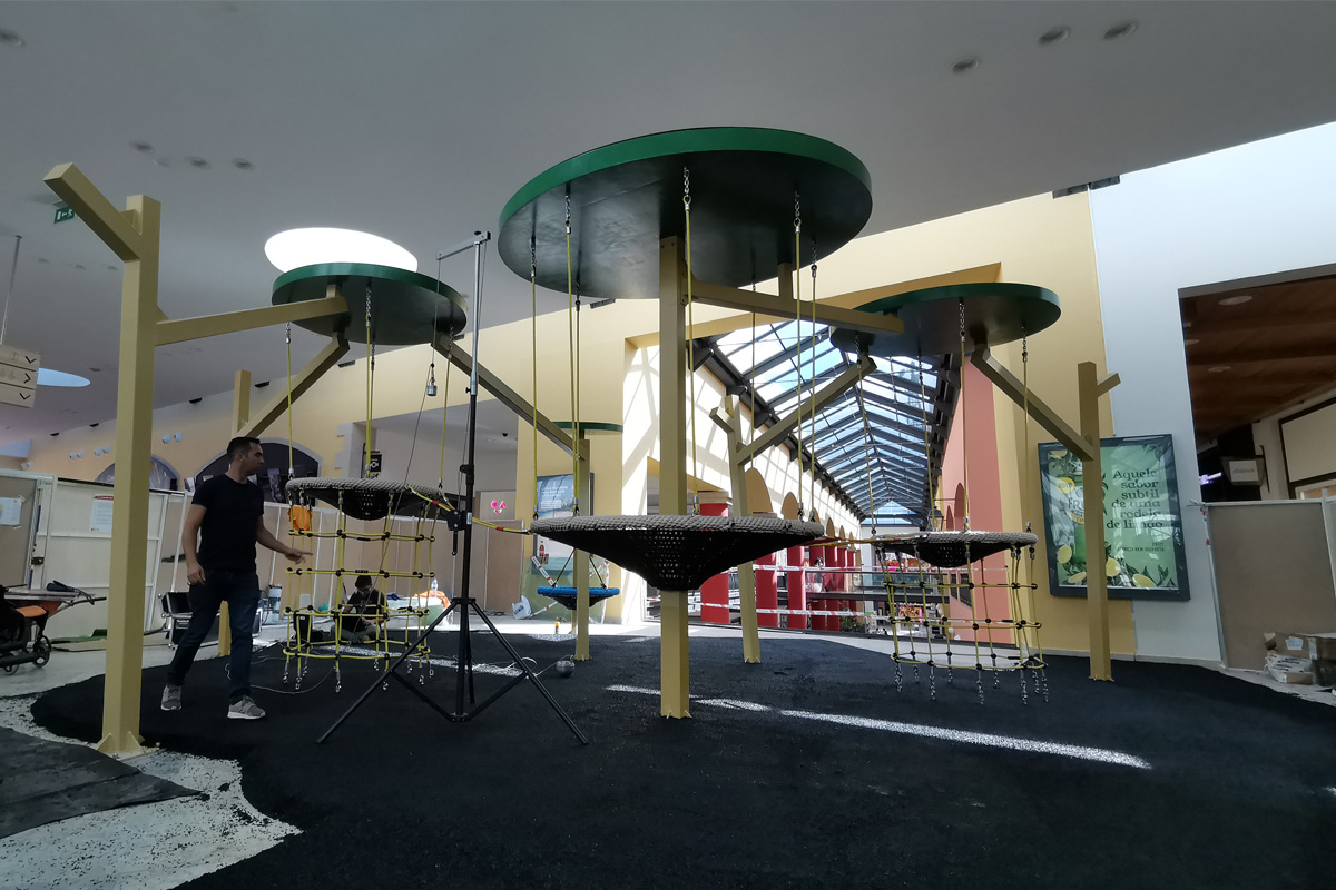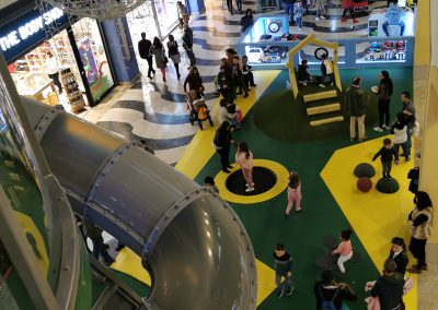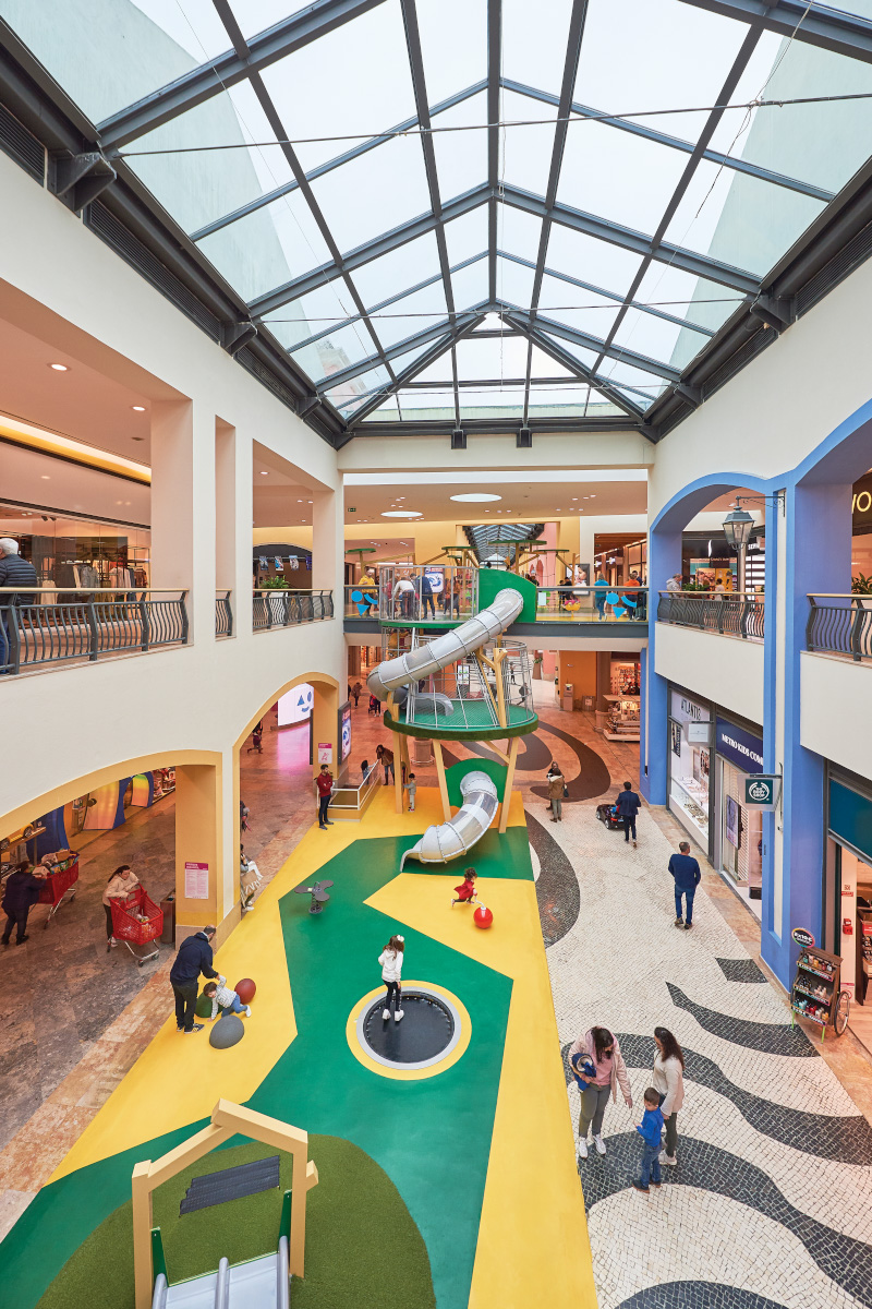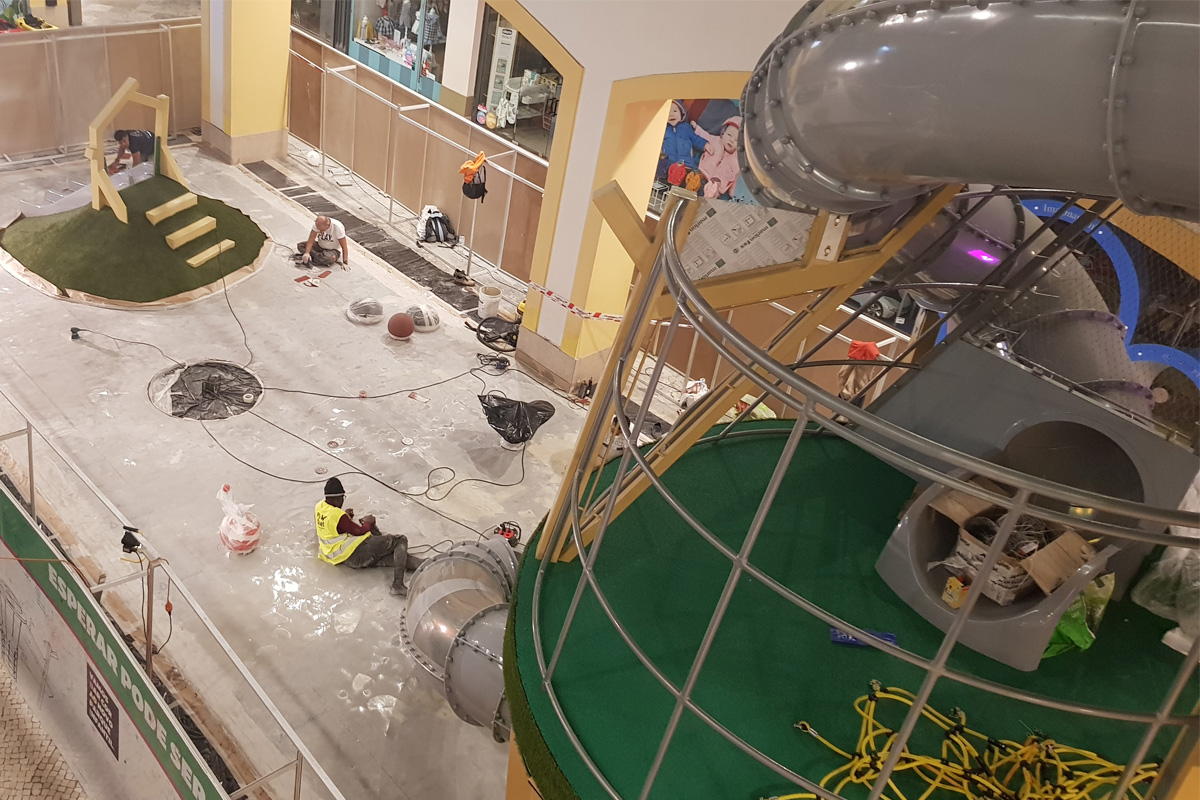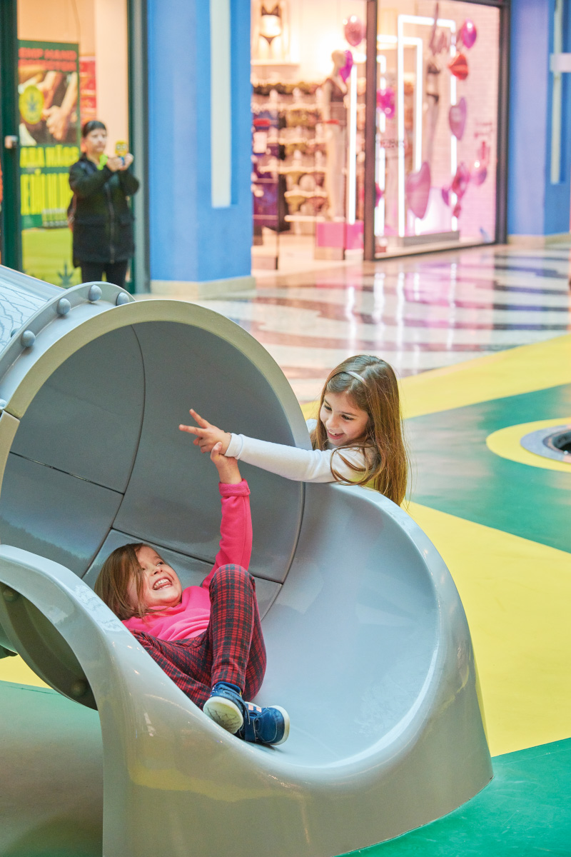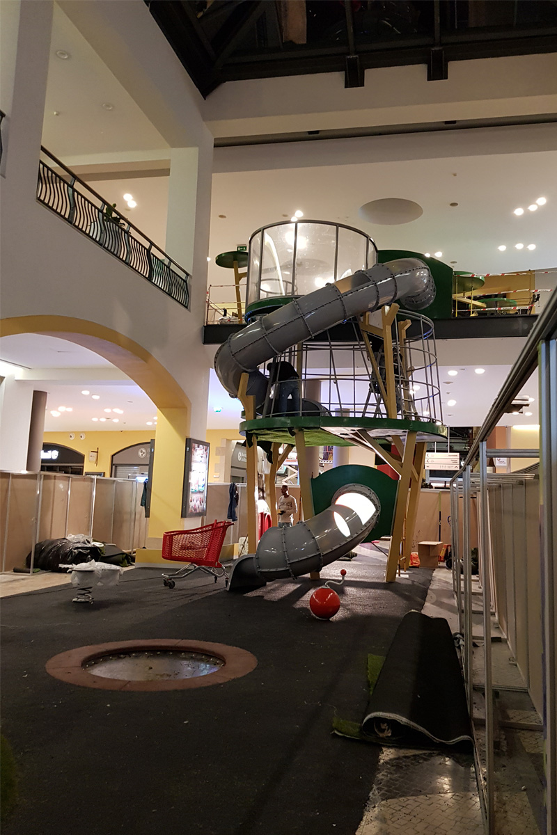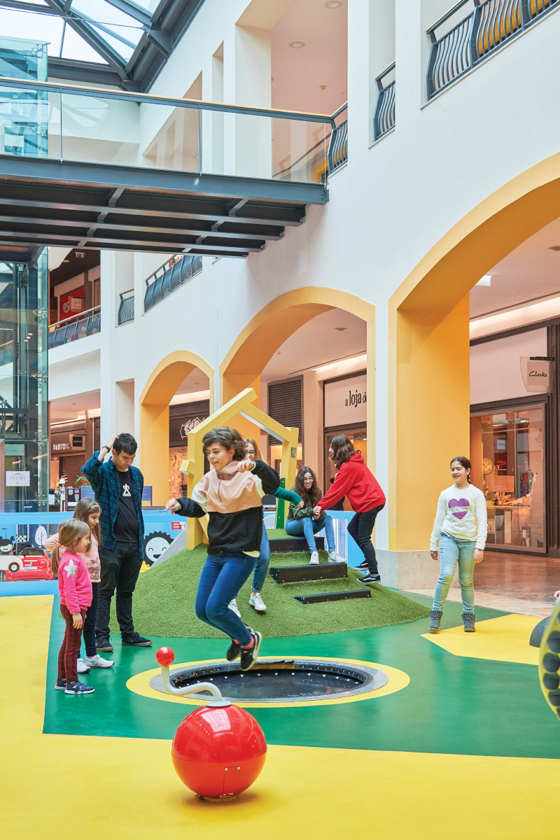 A Play Planet foi convidada a conceber e construir o novo parque infantil, dividido por 2 pisos, mas na mesma sequência visual. O espaço de intervenção compreende um espaço com cerca de 102m2 no corredor principal do Alegro Montijo, muito próximo da grande Praça Central, no piso 0, e outro espaço adjacente no Piso 1, encontrando-se este último no cruzamento entre o corredor principal e a entrada lateral Oeste do Alegro Montijo. Resultando da confluência destes dois percursos de grandes fluxos, o espaço de intervenção tem uma localização altamente privilegiada, ressaltada pela excelente iluminação natural que nele incide.