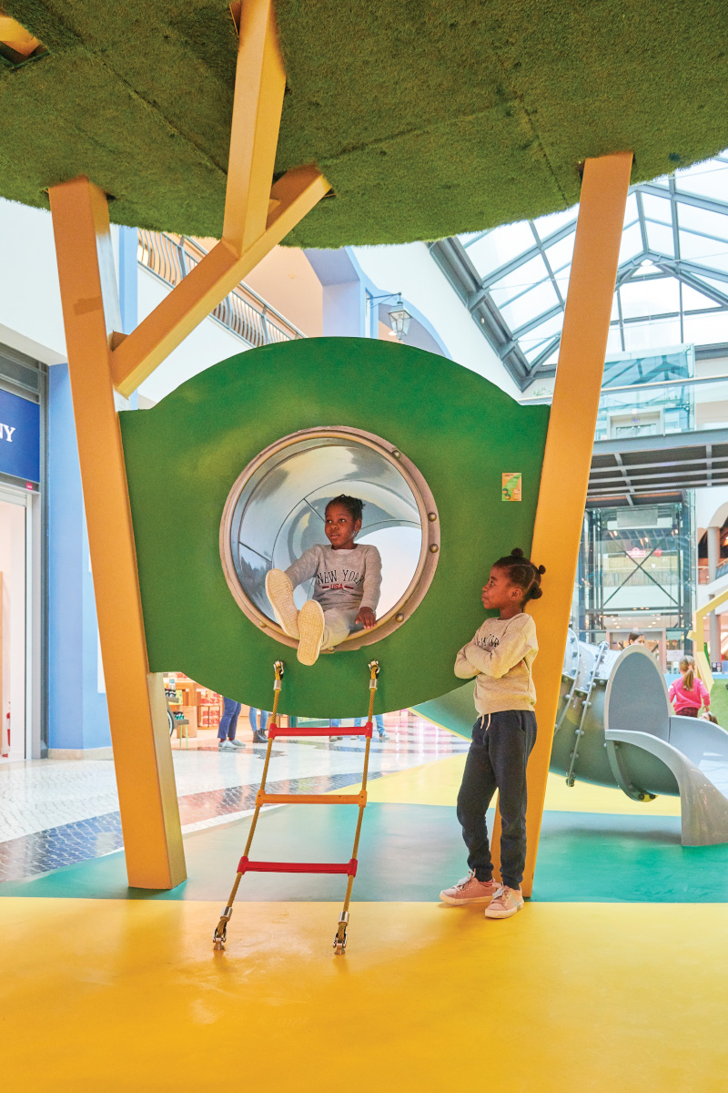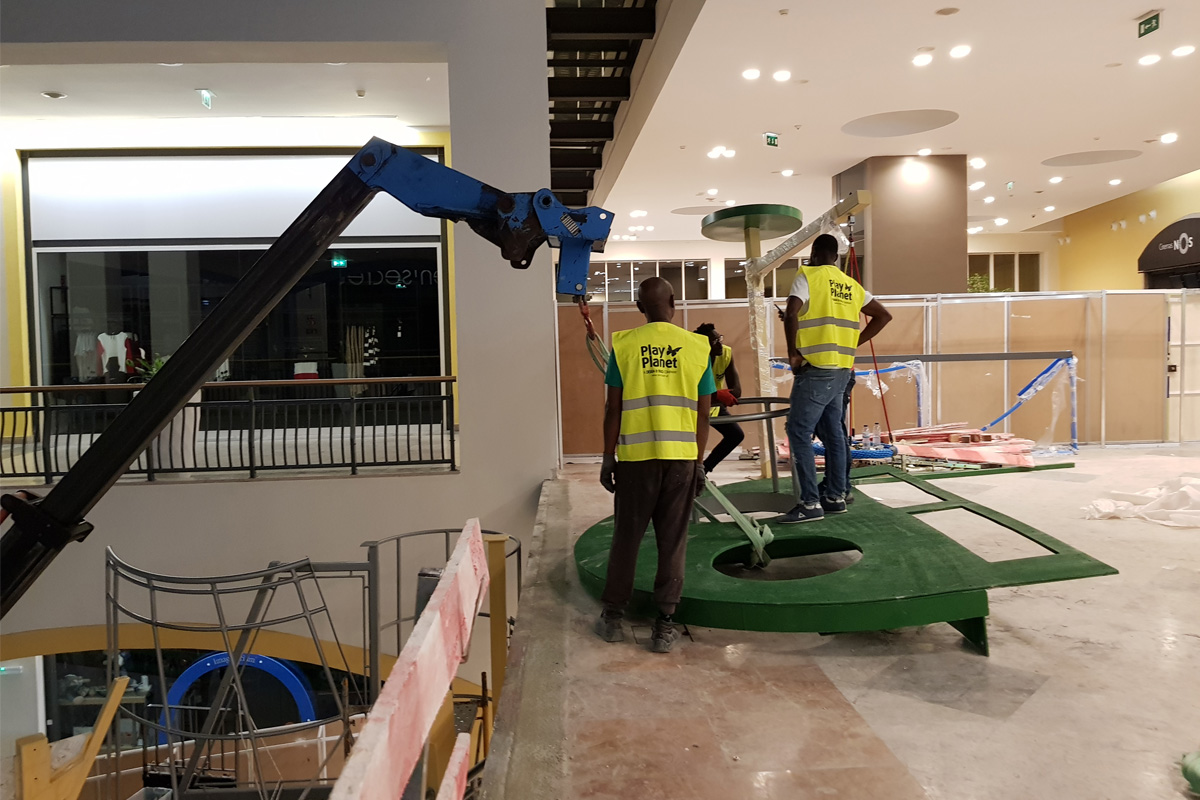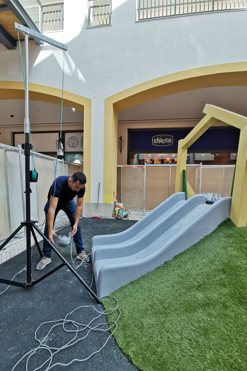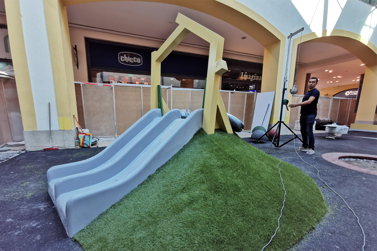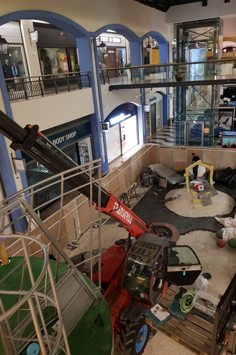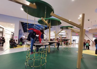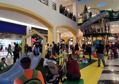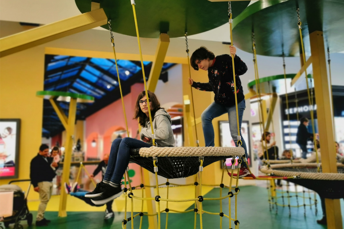 A Play Planet foi convidada a conceber e construir o novo parque infantil, dividido por 2 pisos, mas na mesma sequência visual. O espaço de intervenção compreende um espaço com cerca de 102m2 no corredor principal do Alegro Montijo, muito próximo da grande Praça Central, no piso 0, e outro espaço adjacente no Piso 1, encontrando-se este último no cruzamento entre o corredor principal e a entrada lateral Oeste do Alegro Montijo. Resultando da confluência destes dois percursos de grandes fluxos, o espaço de intervenção tem uma localização altamente privilegiada, ressaltada pela excelente iluminação natural que nele incide.