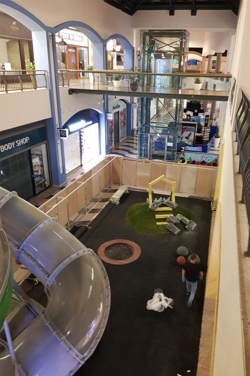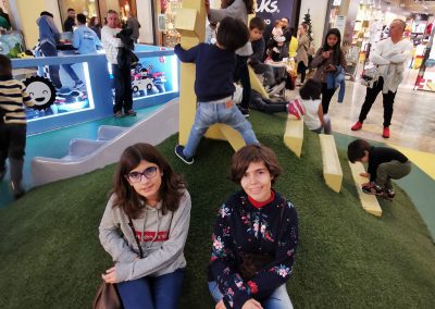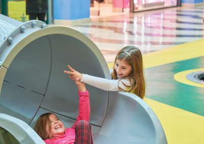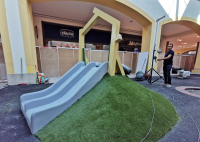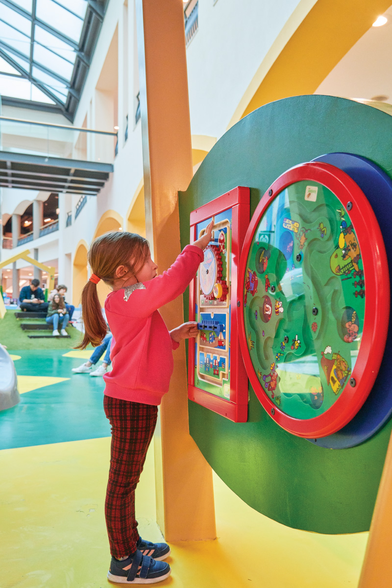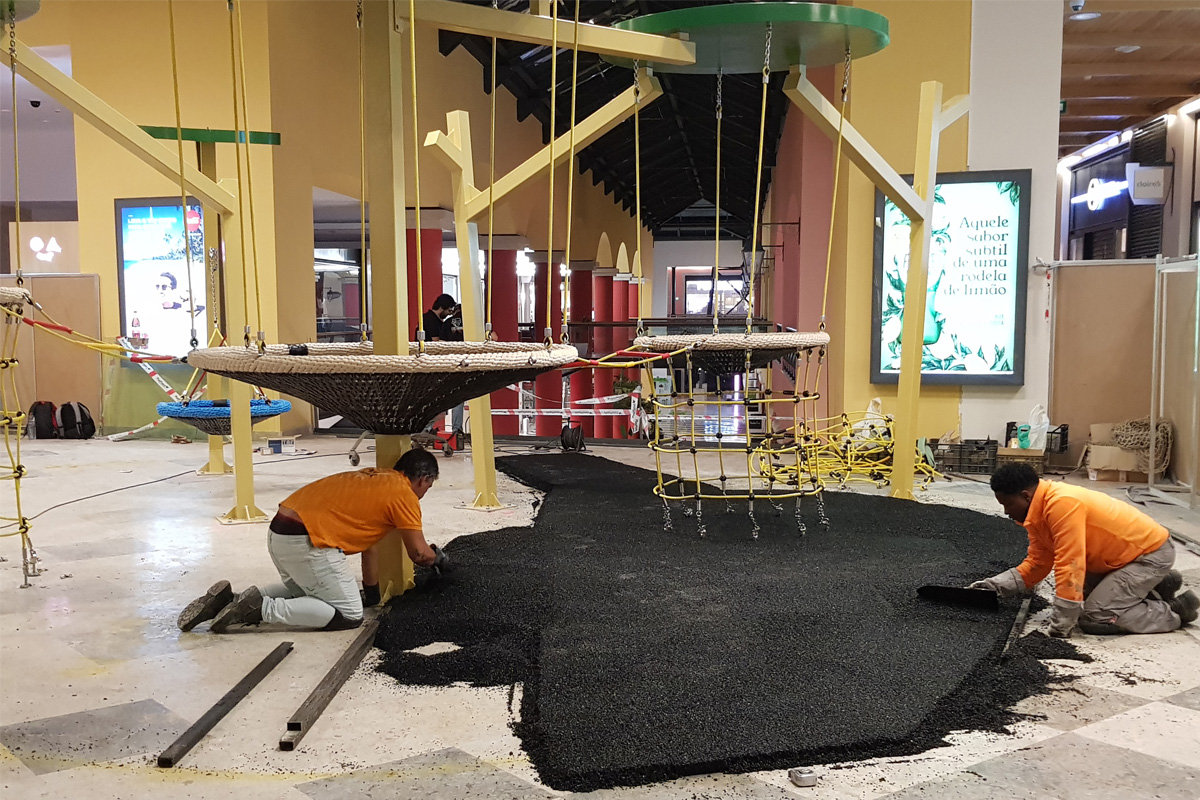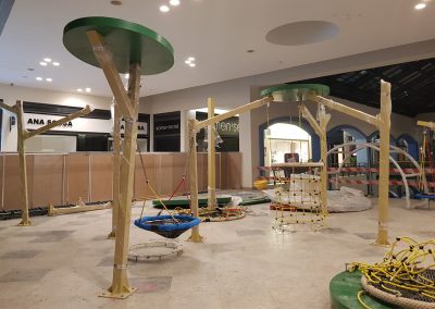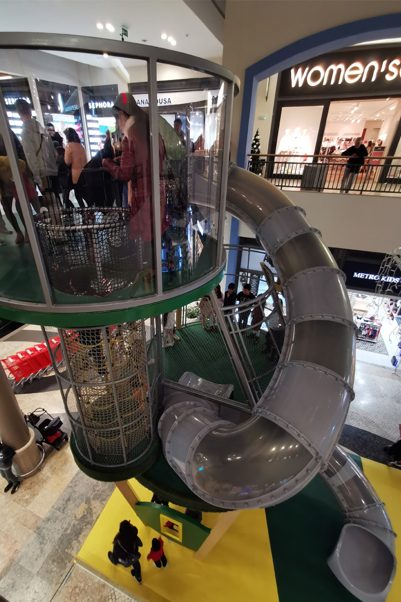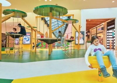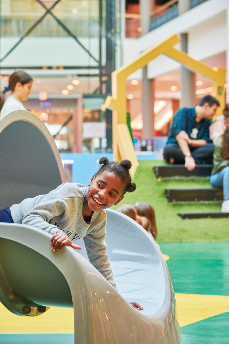 A Play Planet foi convidada a conceber e construir o novo parque infantil, dividido por 2 pisos, mas na mesma sequência visual. O espaço de intervenção compreende um espaço com cerca de 102m2 no corredor principal do Alegro Montijo, muito próximo da grande Praça Central, no piso 0, e outro espaço adjacente no Piso 1, encontrando-se este último no cruzamento entre o corredor principal e a entrada lateral Oeste do Alegro Montijo. Resultando da confluência destes dois percursos de grandes fluxos, o espaço de intervenção tem uma localização altamente privilegiada, ressaltada pela excelente iluminação natural que nele incide.