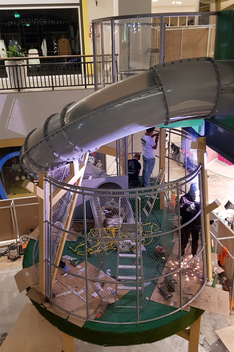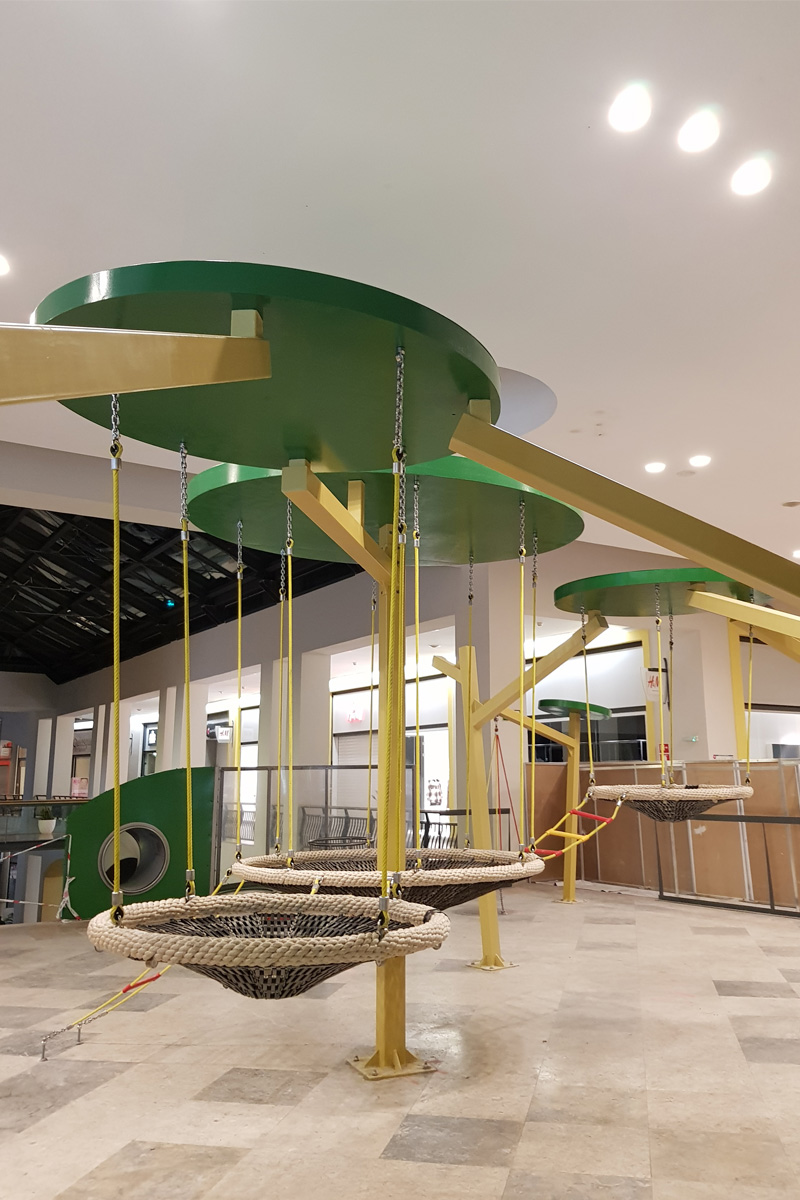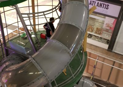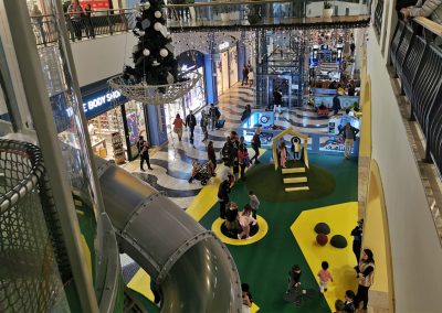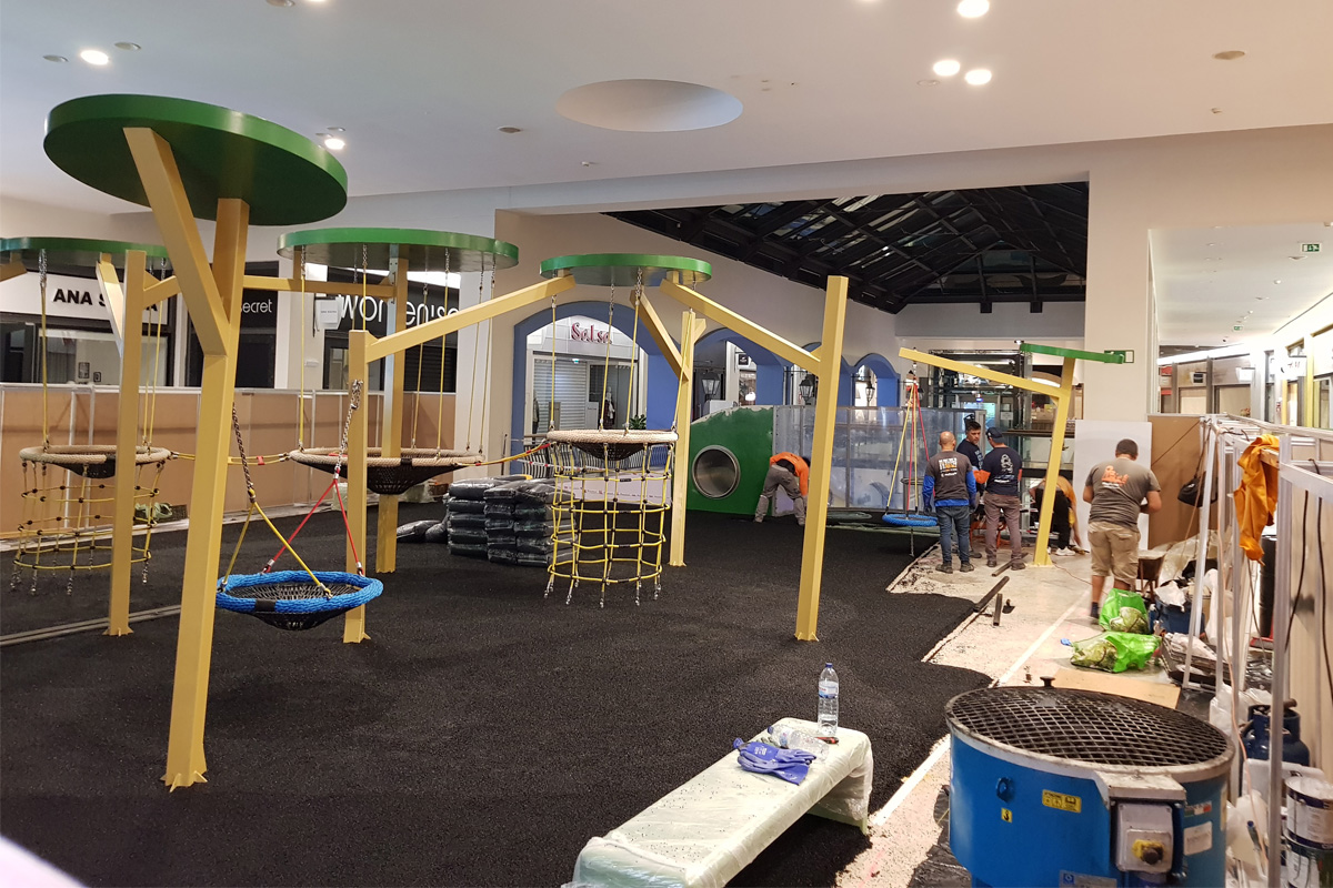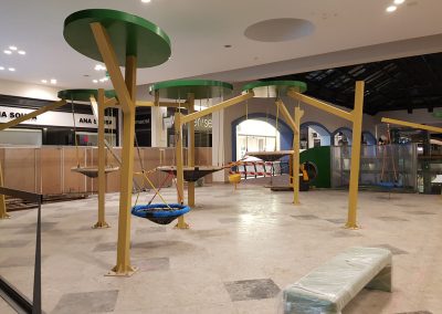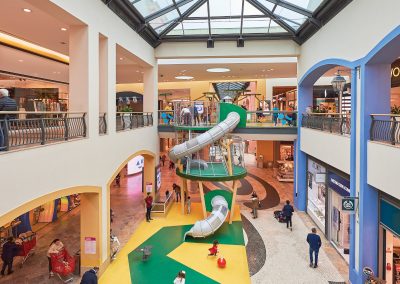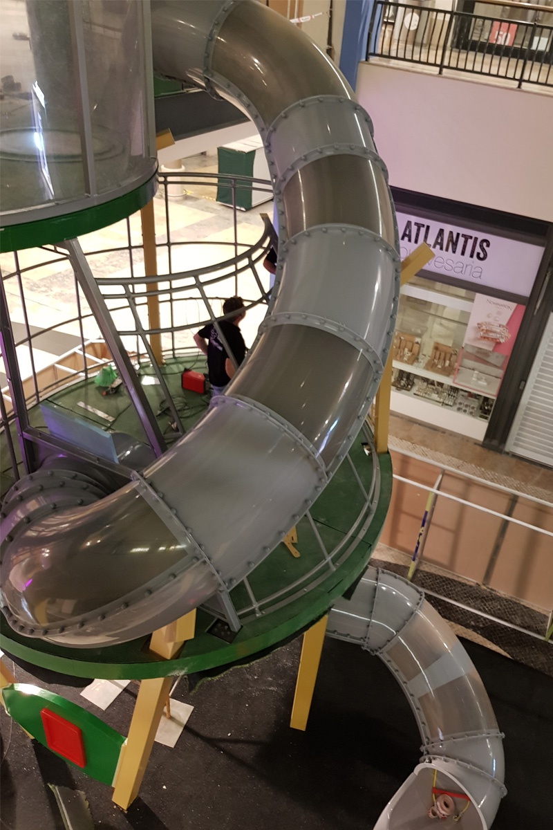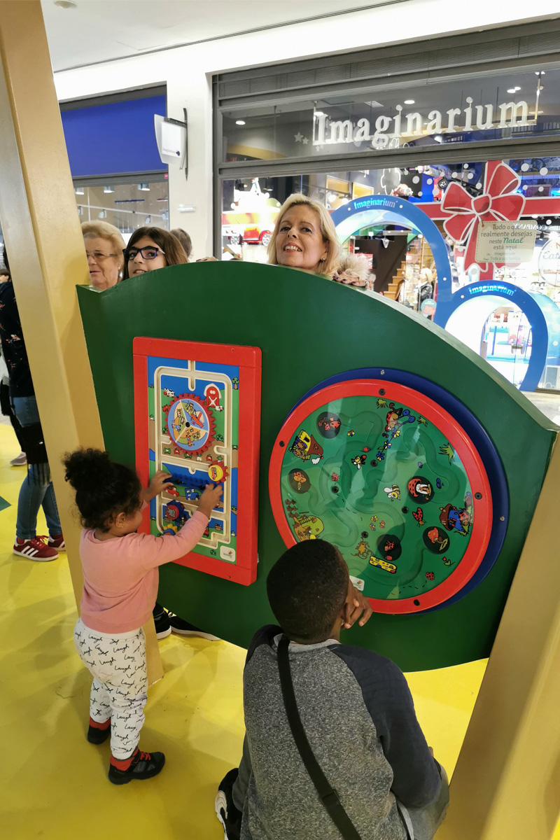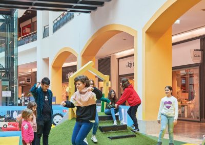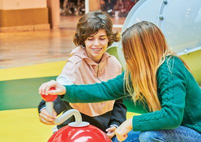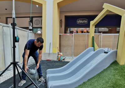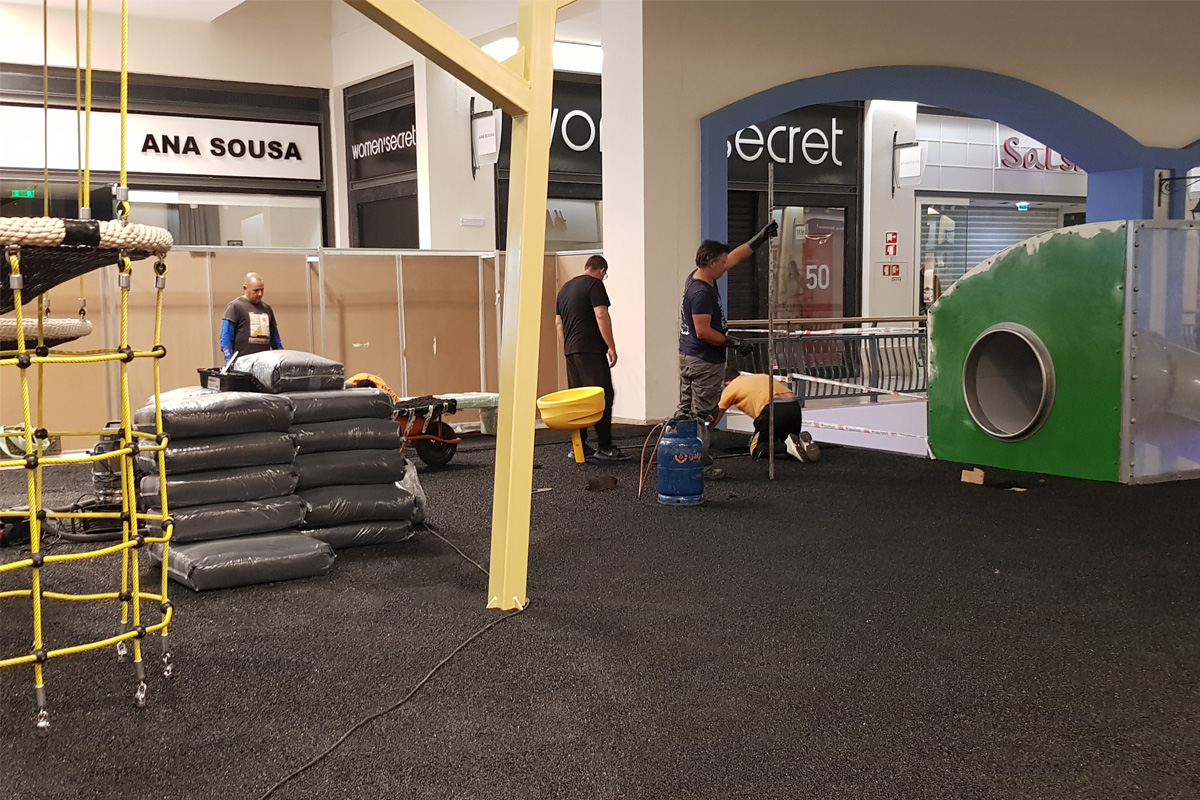 A Play Planet foi convidada a conceber e construir o novo parque infantil, dividido por 2 pisos, mas na mesma sequência visual. O espaço de intervenção compreende um espaço com cerca de 102m2 no corredor principal do Alegro Montijo, muito próximo da grande Praça Central, no piso 0, e outro espaço adjacente no Piso 1, encontrando-se este último no cruzamento entre o corredor principal e a entrada lateral Oeste do Alegro Montijo. Resultando da confluência destes dois percursos de grandes fluxos, o espaço de intervenção tem uma localização altamente privilegiada, ressaltada pela excelente iluminação natural que nele incide.