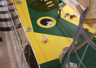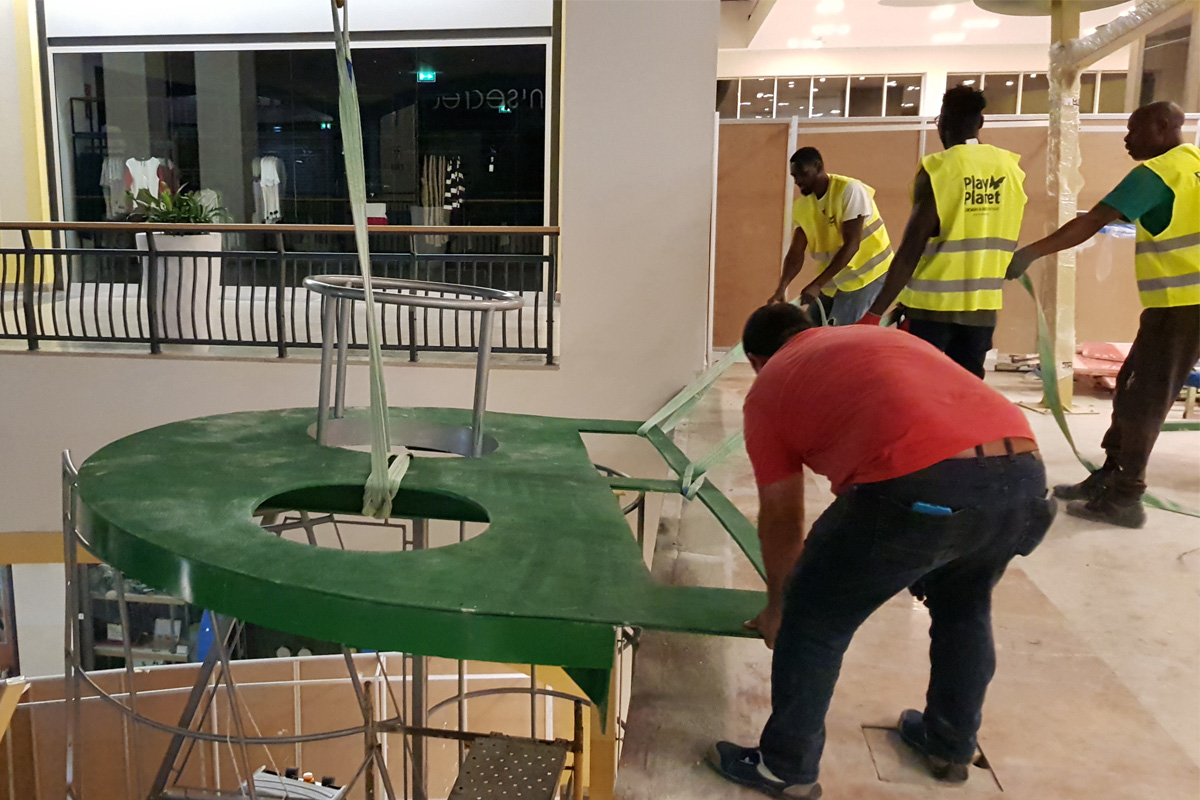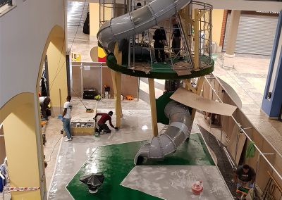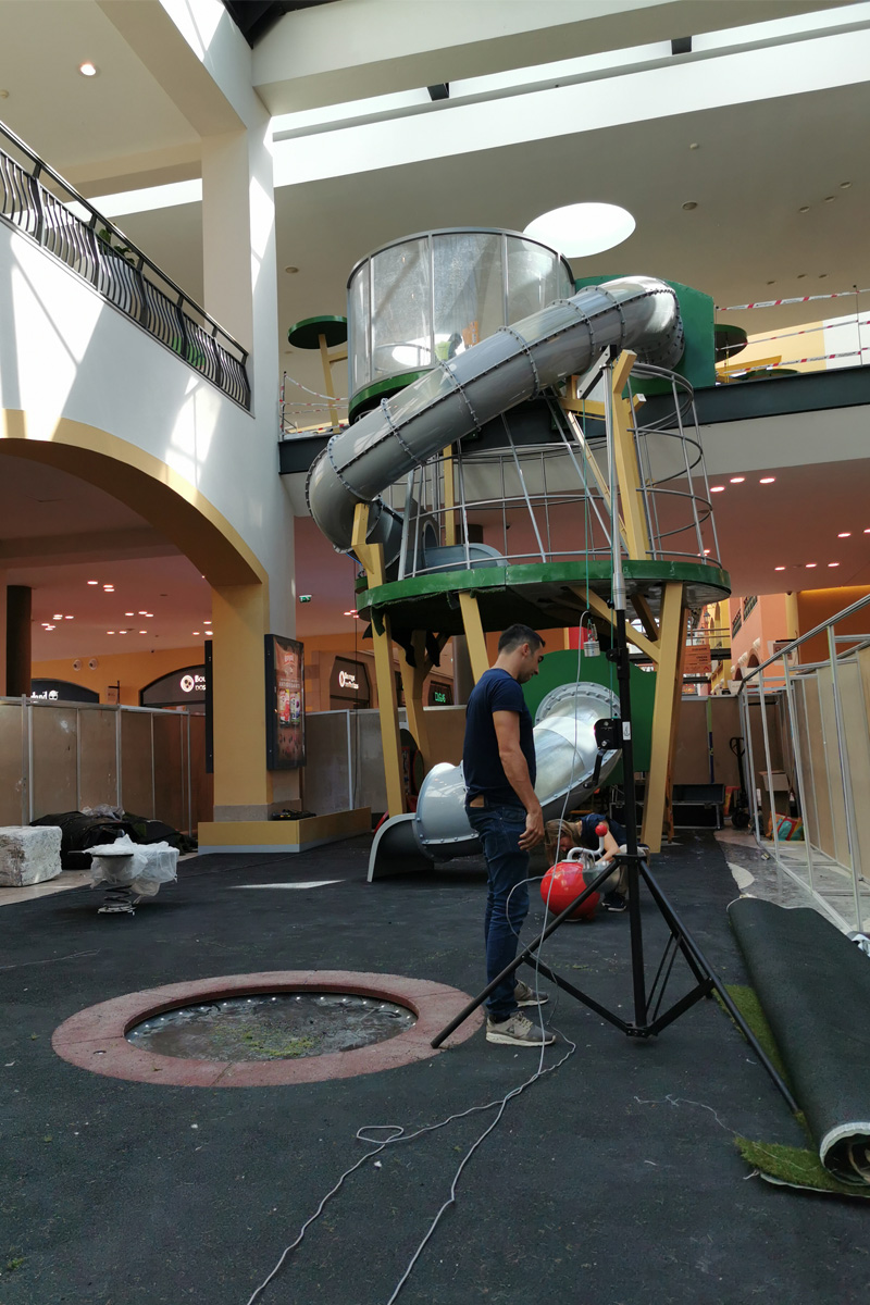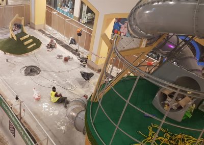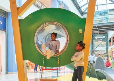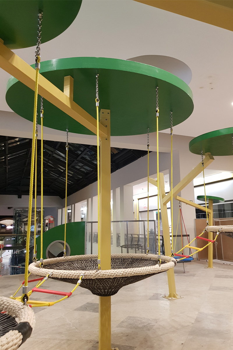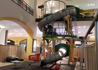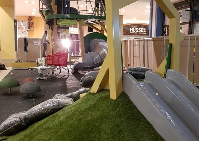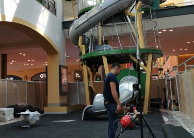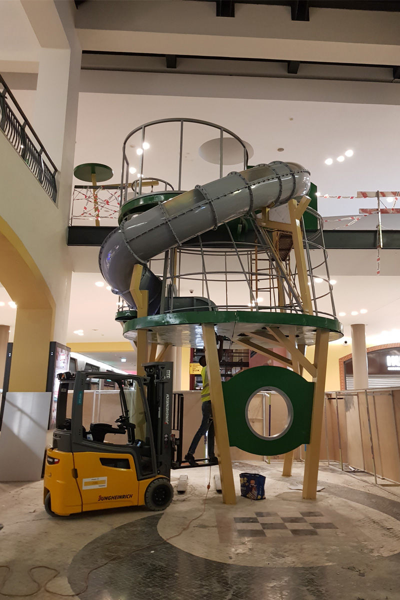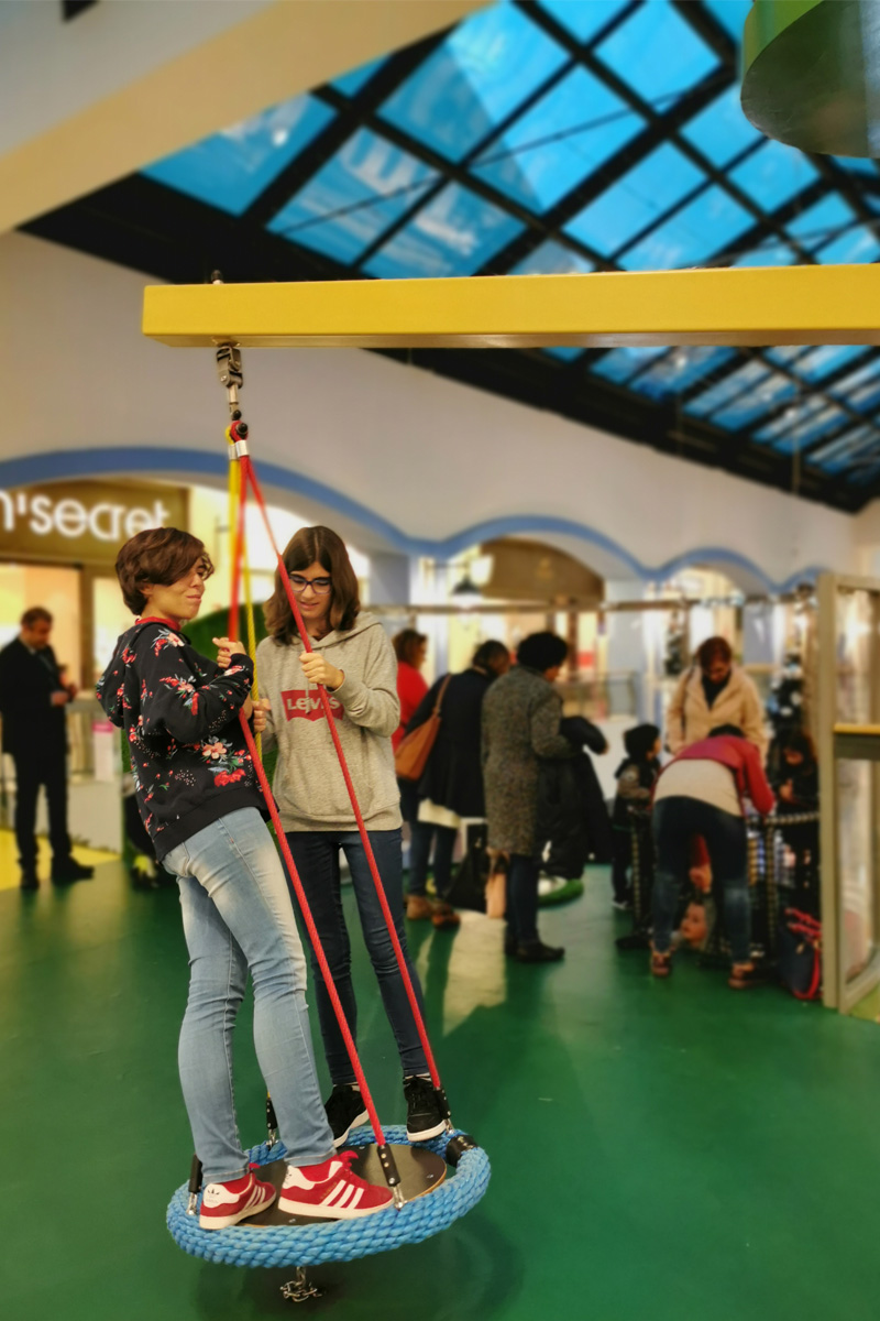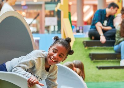 A Play Planet foi convidada a conceber e construir o novo parque infantil, dividido por 2 pisos, mas na mesma sequência visual. O espaço de intervenção compreende um espaço com cerca de 102m2 no corredor principal do Alegro Montijo, muito próximo da grande Praça Central, no piso 0, e outro espaço adjacente no Piso 1, encontrando-se este último no cruzamento entre o corredor principal e a entrada lateral Oeste do Alegro Montijo. Resultando da confluência destes dois percursos de grandes fluxos, o espaço de intervenção tem uma localização altamente privilegiada, ressaltada pela excelente iluminação natural que nele incide.