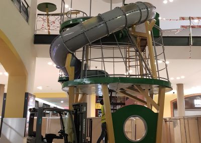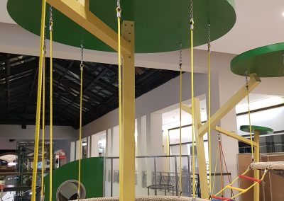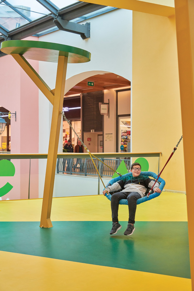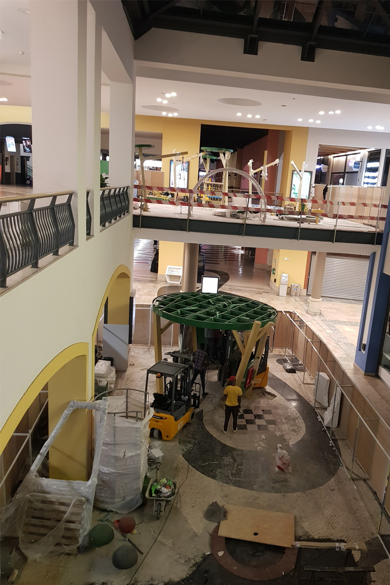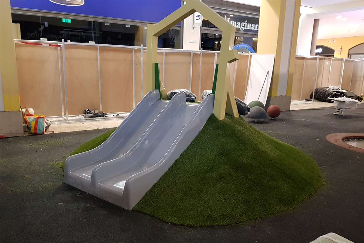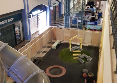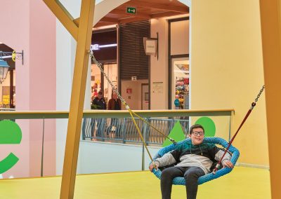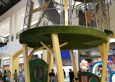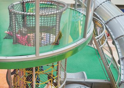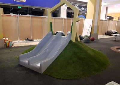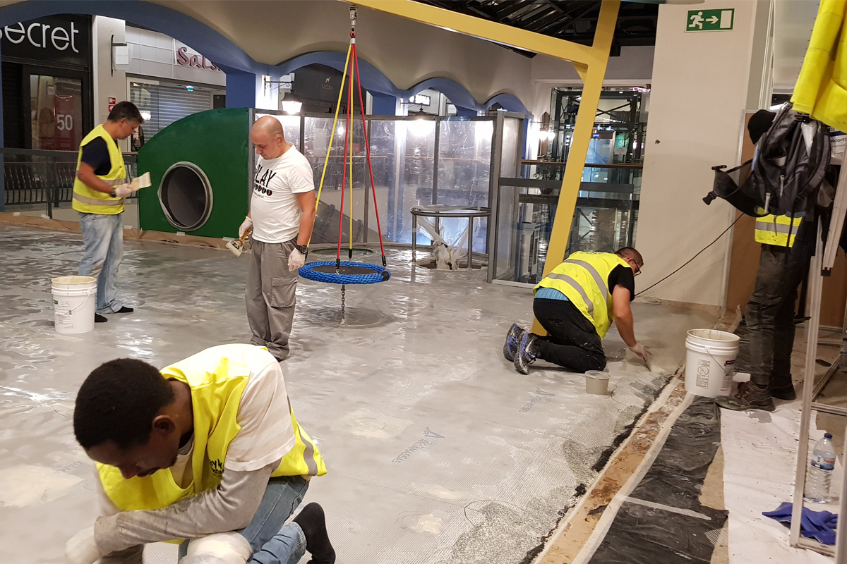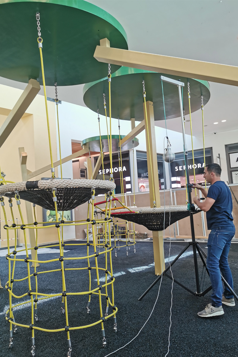 A Play Planet foi convidada a conceber e construir o novo parque infantil, dividido por 2 pisos, mas na mesma sequência visual. O espaço de intervenção compreende um espaço com cerca de 102m2 no corredor principal do Alegro Montijo, muito próximo da grande Praça Central, no piso 0, e outro espaço adjacente no Piso 1, encontrando-se este último no cruzamento entre o corredor principal e a entrada lateral Oeste do Alegro Montijo. Resultando da confluência destes dois percursos de grandes fluxos, o espaço de intervenção tem uma localização altamente privilegiada, ressaltada pela excelente iluminação natural que nele incide.