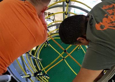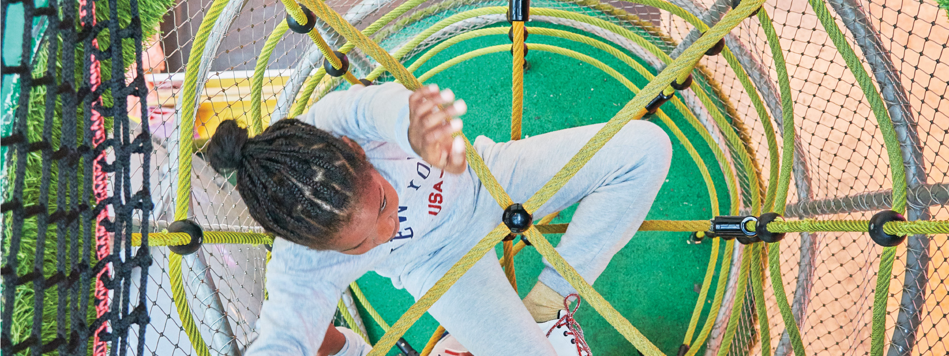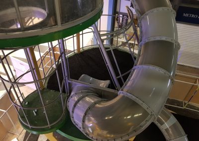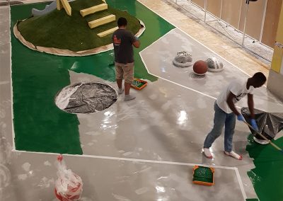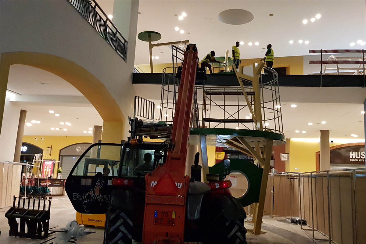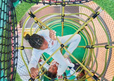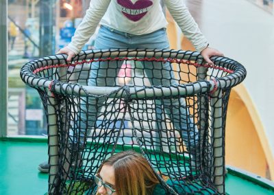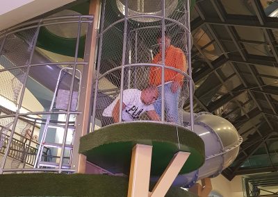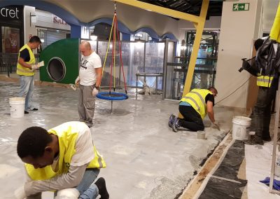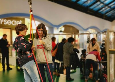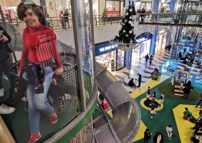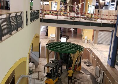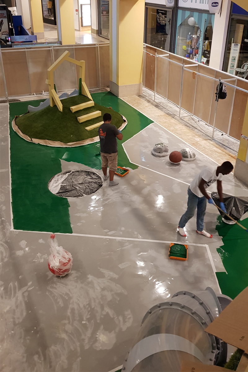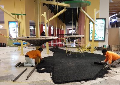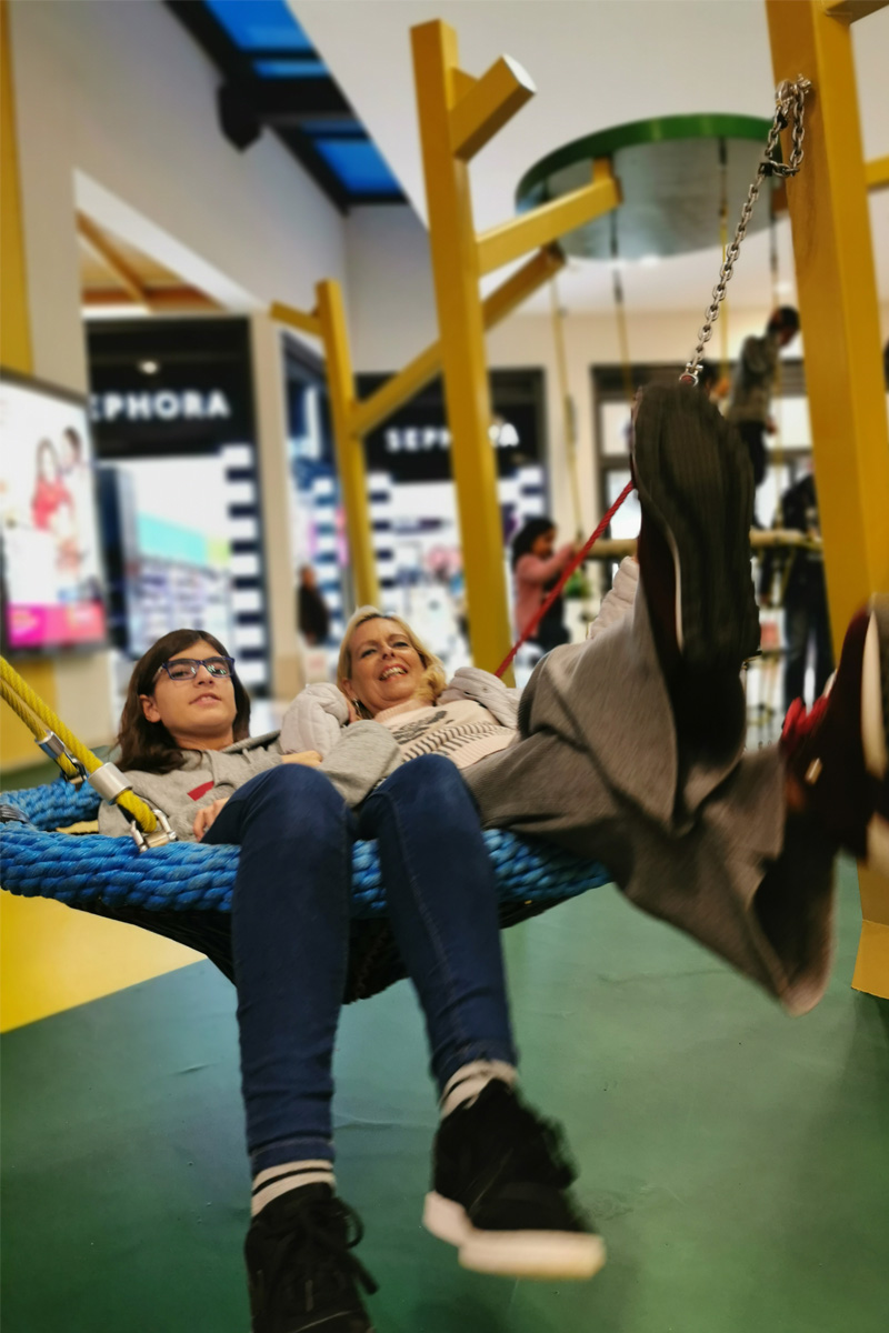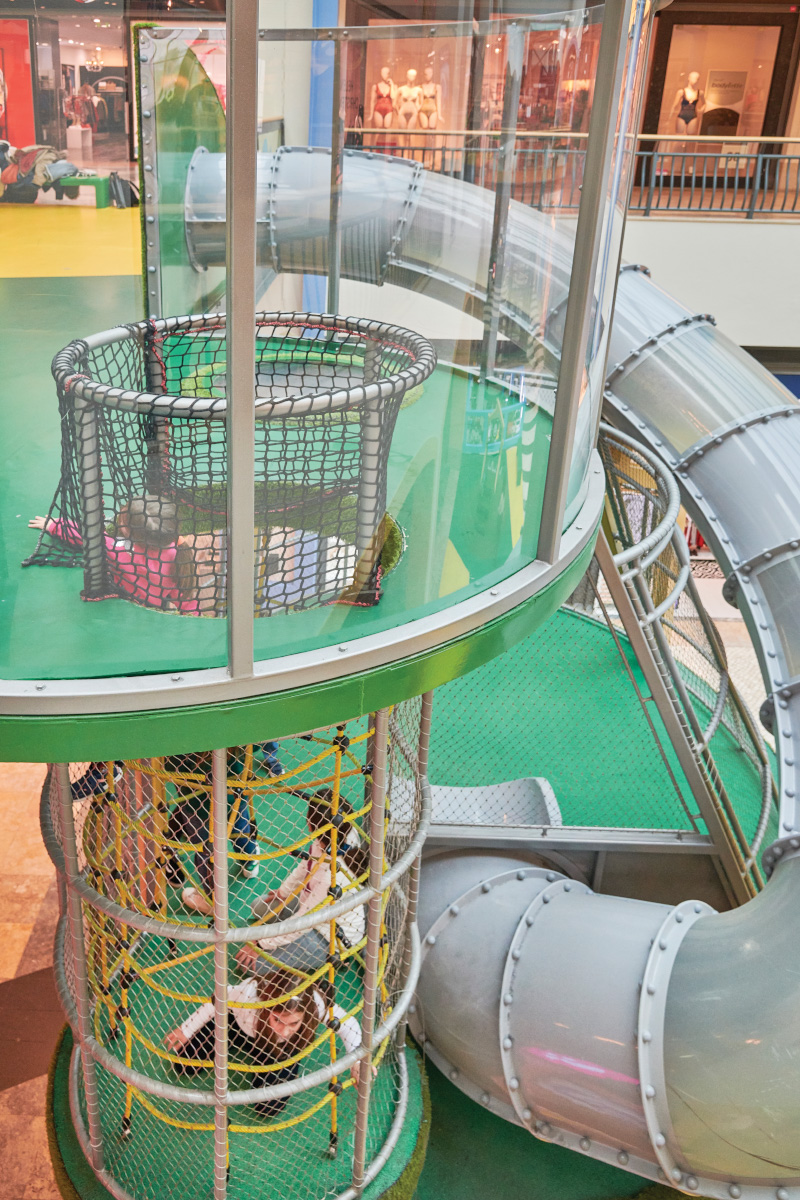 A Play Planet foi convidada a conceber e construir o novo parque infantil, dividido por 2 pisos, mas na mesma sequência visual. O espaço de intervenção compreende um espaço com cerca de 102m2 no corredor principal do Alegro Montijo, muito próximo da grande Praça Central, no piso 0, e outro espaço adjacente no Piso 1, encontrando-se este último no cruzamento entre o corredor principal e a entrada lateral Oeste do Alegro Montijo. Resultando da confluência destes dois percursos de grandes fluxos, o espaço de intervenção tem uma localização altamente privilegiada, ressaltada pela excelente iluminação natural que nele incide.