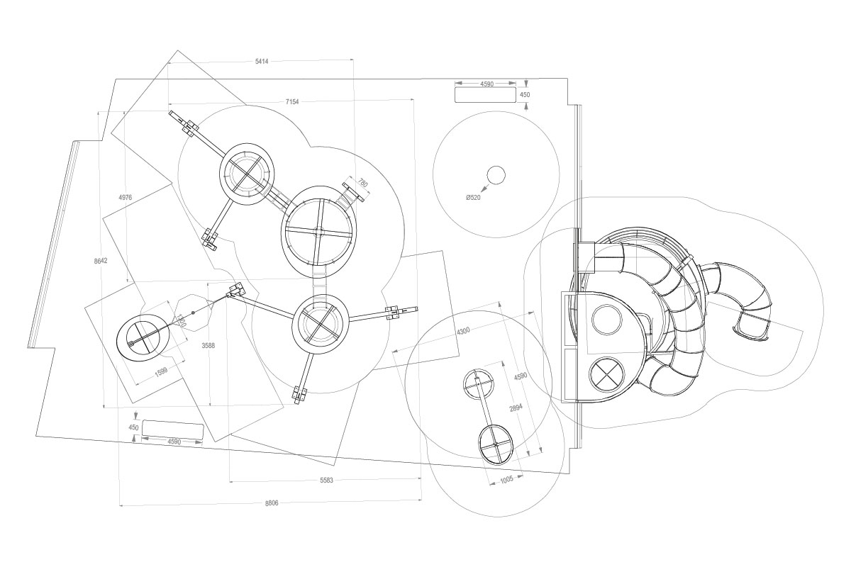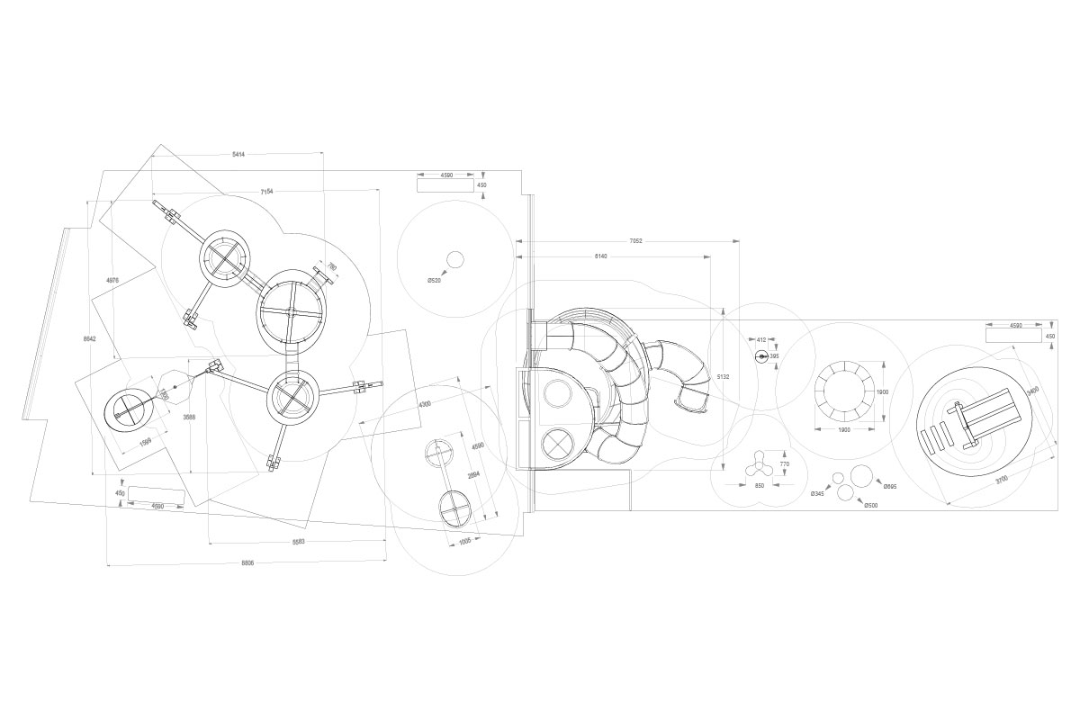 A proposta para este espaço de jogo e recreio interior regeu-se por algumas premissas fundamentais, tendo em conta a especificidade da envolvente comercial em que se encontra. Assim, factores como a transparência dos elementos e a boa visibilidade através dos mesmos, foram determinantes no desenvolvimento deste projecto. Também a escolha de materiais foi pensada no sentido de dar continuidade ao conceito de arquitectura que deu ao Alegro Montijo o carácter de natureza rural da região, com os edifícios a evocar o tipo de quinta típica da sua identidade paisagística. A estética encontrada centrou-se num conceito figurativo e desconstruído de natureza, uma floresta encantada moderna, como muito espaço para a imaginação, elegante e familiar.