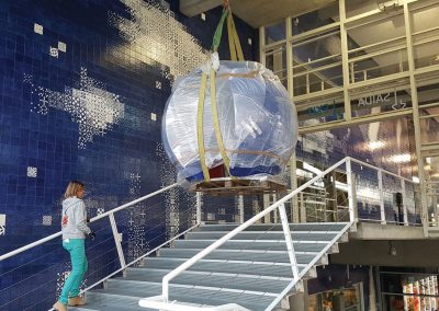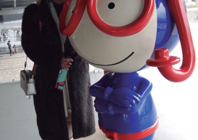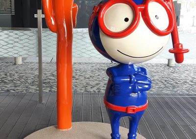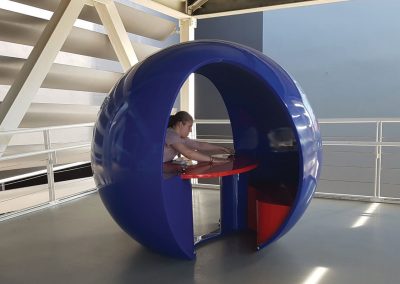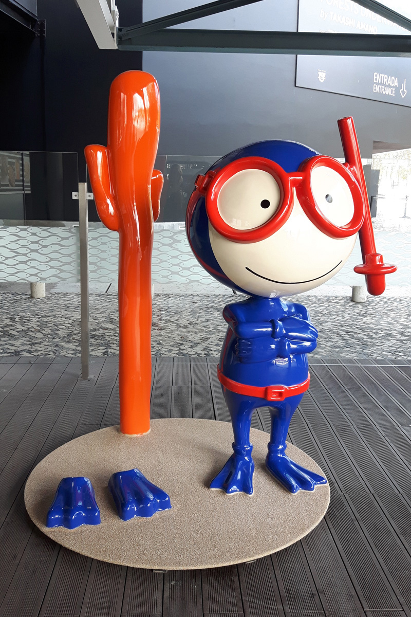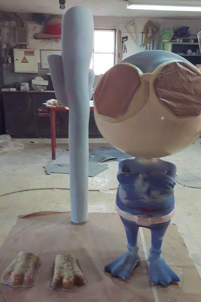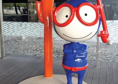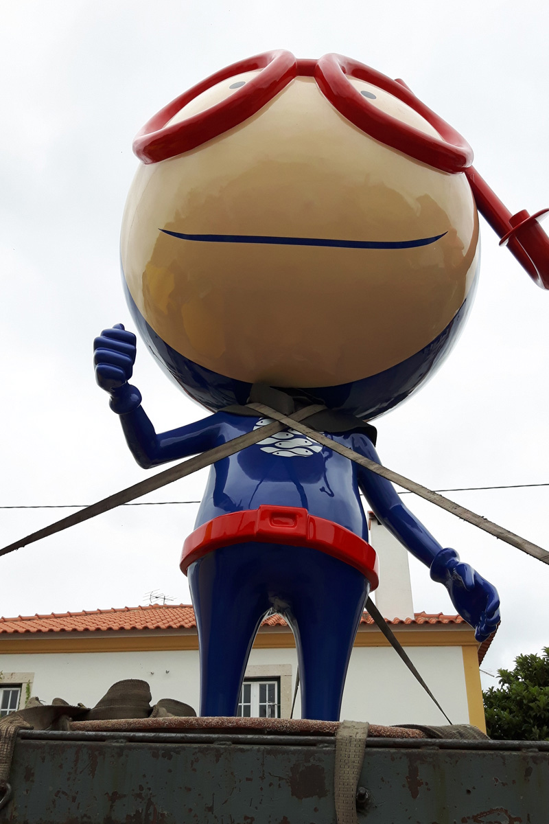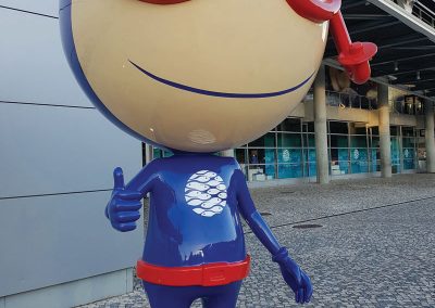 Fomos também chamados a recuperar a grande figura do Vasco que “saúda” os visitantes em frente à entrada principal e a produzir uma nova figura do Vasco, mais pequena, para instalação no interior do edifício. E, para uma instalação temporária, durante o Verão de 2017, a Play Planet produziu ainda um ponto de carregamento de telemóveis, inspirada na forma da cabeça do Vasco, com mesa e bancos. Este ponto de carregamento tem a particularidade de não necessitar de energia elétrica, mas de operar com sistema interno por energia cinética, activado pelos utilizadores girando um dos 2 discos, embutidos na mesa.