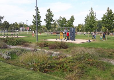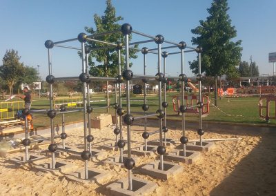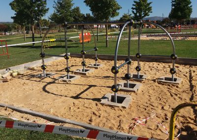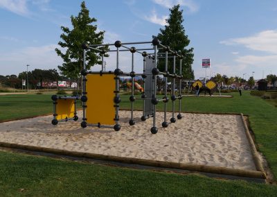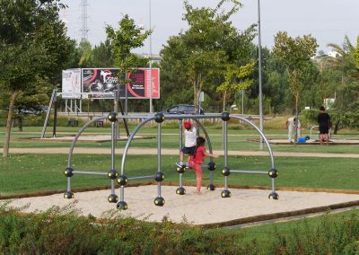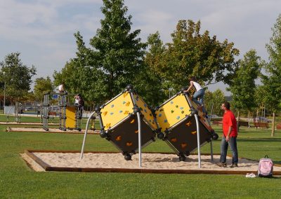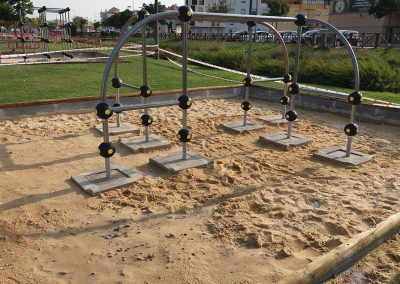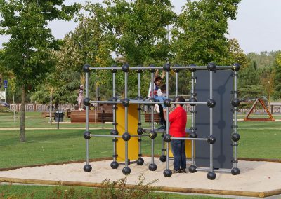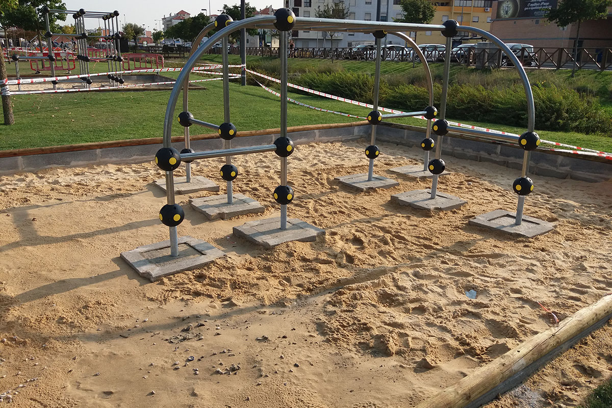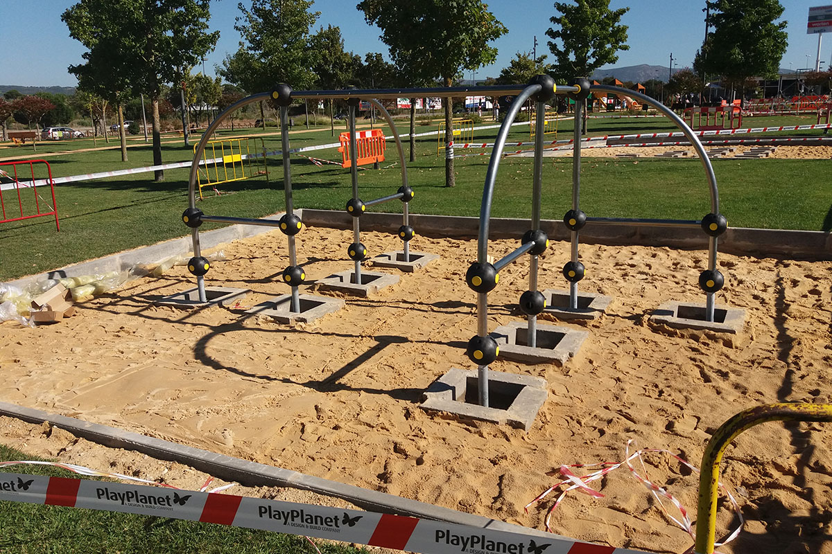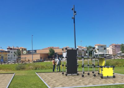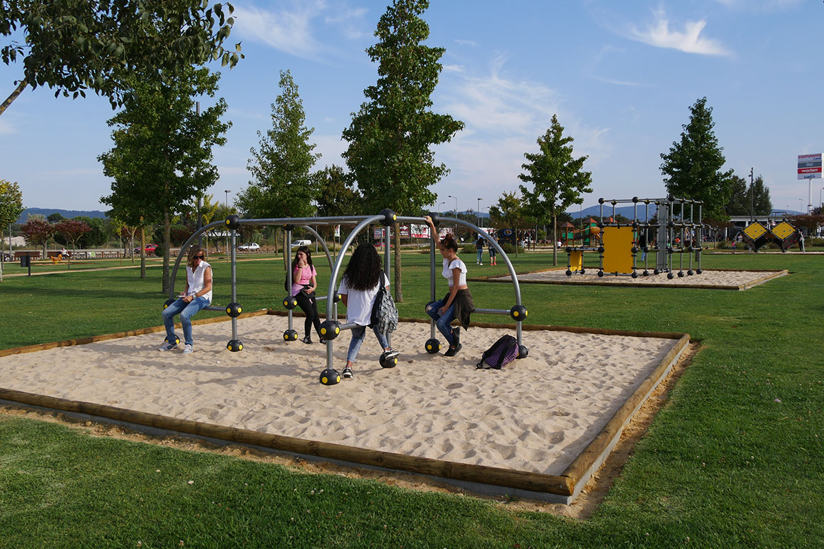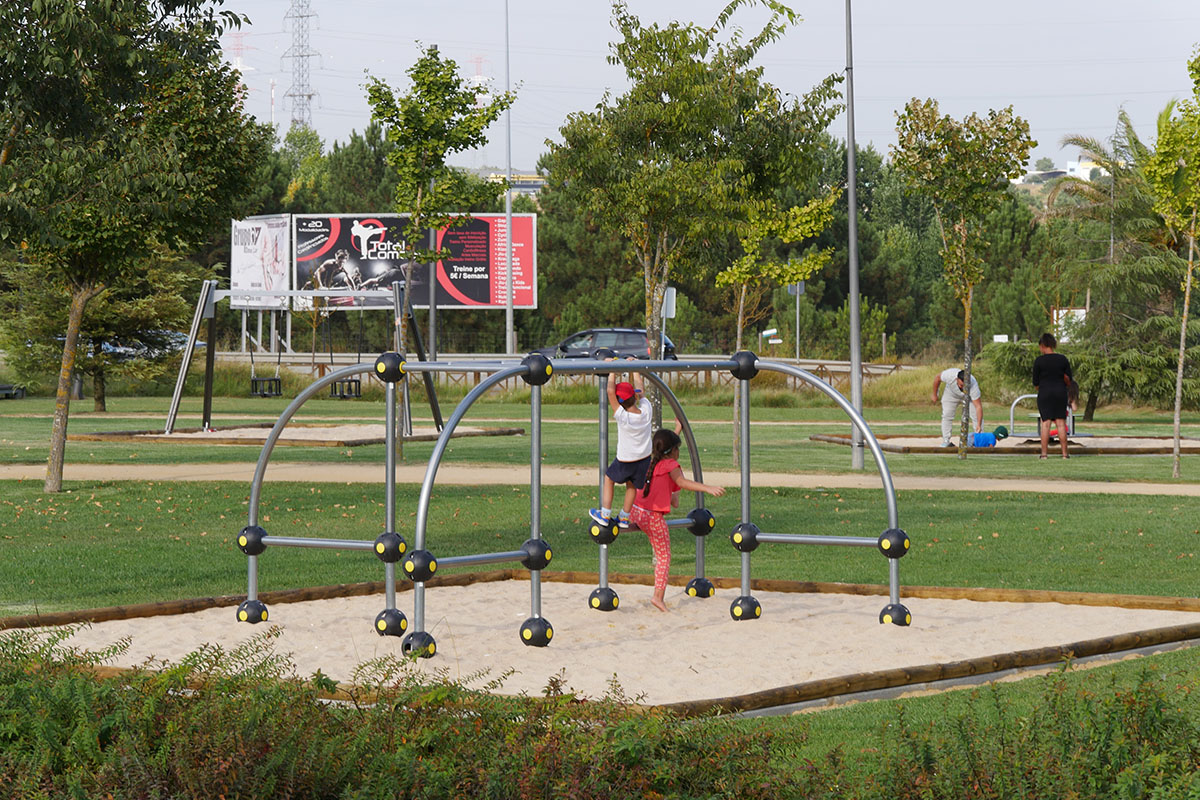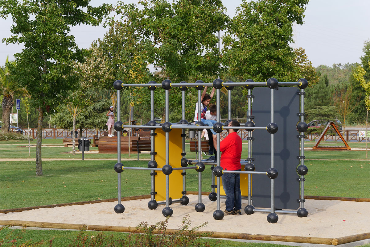 Além de alguns equipamentos mais tradicionais como um baloiço duplo e balancé, apostámos em equipamentos mais arrojados para um público mais juvenil, como boulders para escalada transversal, e também vários equipamentos para o treino da modalidade desportiva Parkour.