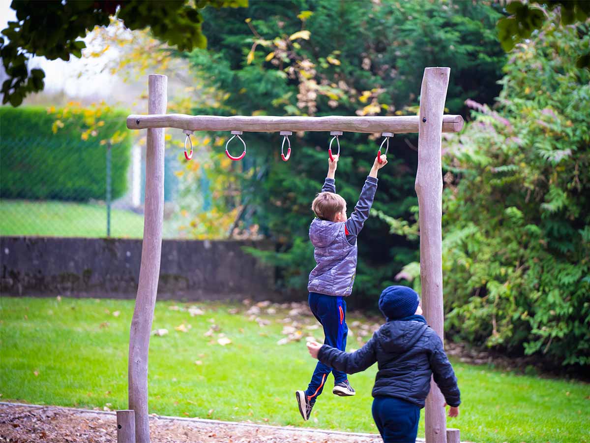 Materiais: Os diferentes postes (60 a 80mm/ 100 a 120mm/120 a 140mm de diâmetro) são feitos de robínia sem seiva e sem casca. A madeira de robínia é lixada e como é naturalmente à prova de podridão não requer nenhuma proteção química adicional. É igualmente extremamente resistente a ataques de fontes externas (insetos, fungos, variações climáticas), garantindo a durabilidade a longo prazo ao equipamento. Os tubos são fabricados em aço inoxidável, diâmetro 40mm, garantindo durabilidade e confiabilidade duradouras ao equipamento. Fixações de aço inoxidável protegidas por tampas antivandalismo em poliamida.