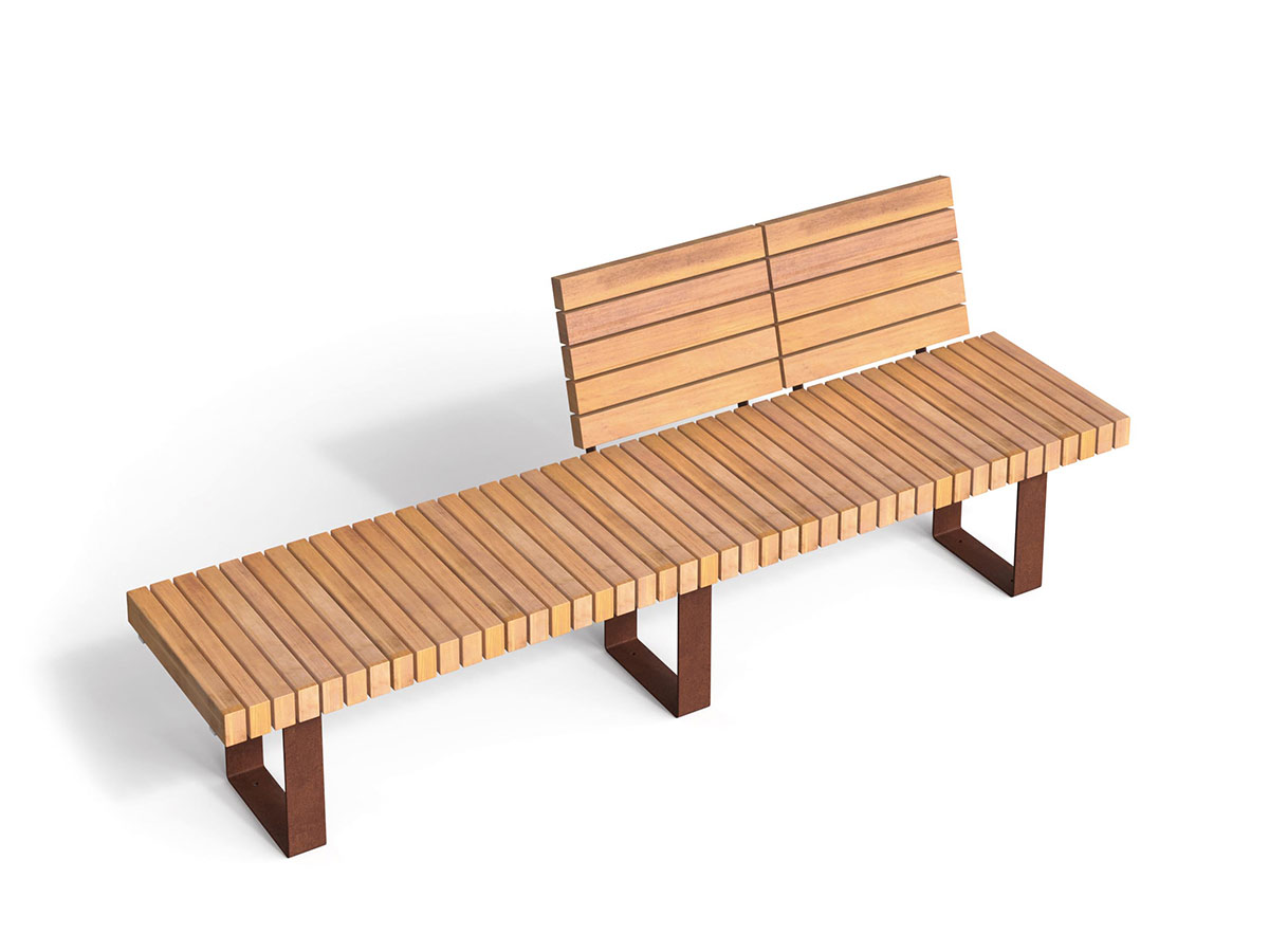 Assento em madeira dura ou de larício (com alinhamento transversal da madeira), para banco Cobra, com 2 encostos. Não inclui suportes (vendidos em separado). Opcionalmente podem ser adicionados Encosto e Apoio de Braços, mediante consulta e acréscimo de preço. Pode ser combinado com 3 suportes em aço ou aço corten com preenchimento “vazio” ou “cheio” (ver mais informações nas páginas dos suportes).