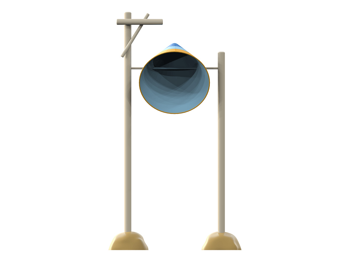 Equipamento aquático para spray park ou para colocar em piscina de criança com profundidade máxima de 500mm. Composto por dois postes em forma de troncos de madeira e uma barra na qual está fixa um balde de descarga cónico colorido. Equipamento fabricado na Europa, de acordo com as Normas Europeias EN 1069, 1176, 13451 e 17232, certificado pela TUV.