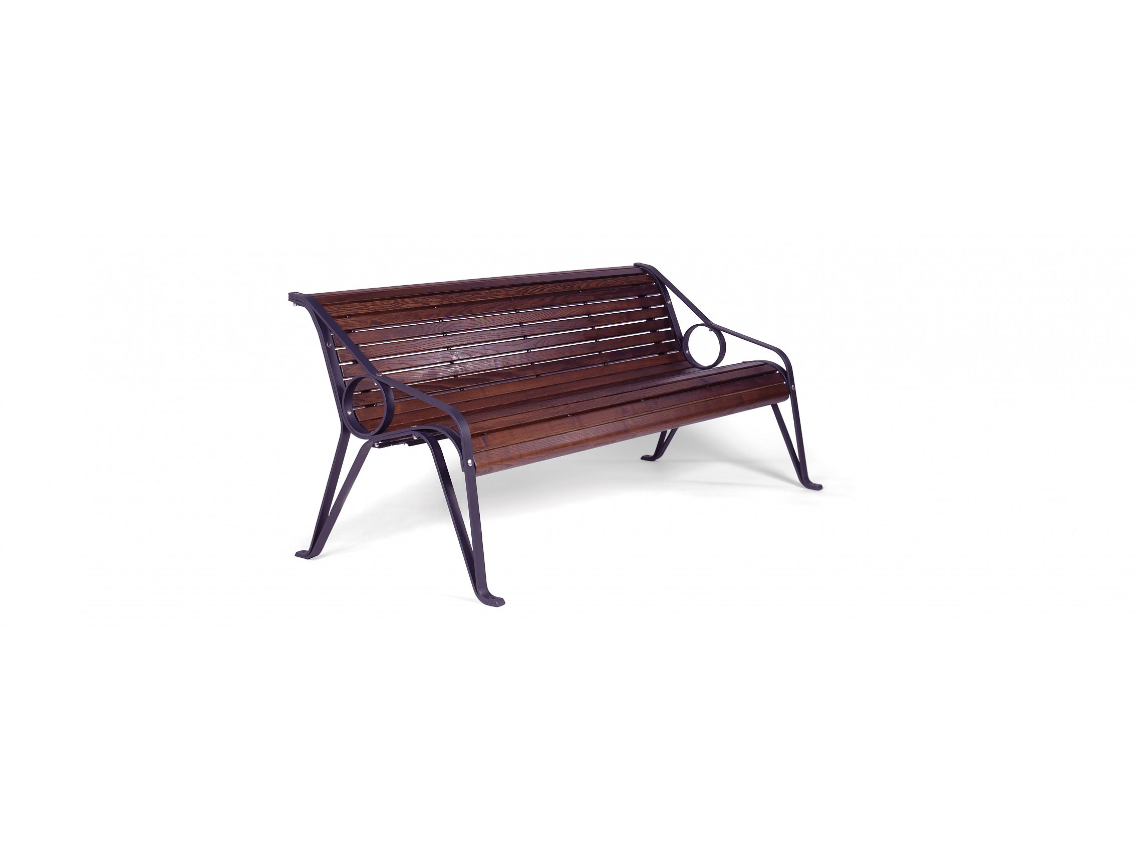58-T: Assento e encosto em ripas de madeira tratada com 100% certificação FSC, na cor castanho-escuro.