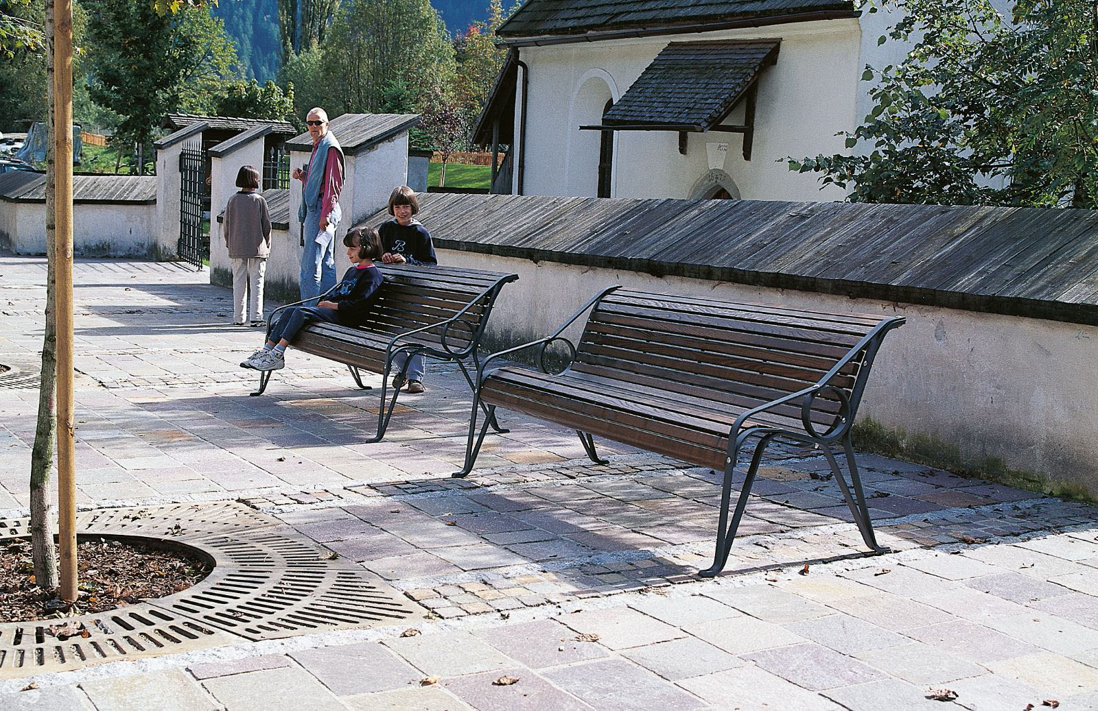 58-UT: Assento e encosto em ripas de madeira tropical com 100% certificação FSC, à cor natural da madeira, sem necessidade de tratamento ou pintura. Com o tempo a tonalidade da madeira passa de castanho claro a acinzentada, correspondente a um processo natural de envelhecimento que não compromete a sua resistência ou durabilidade.
