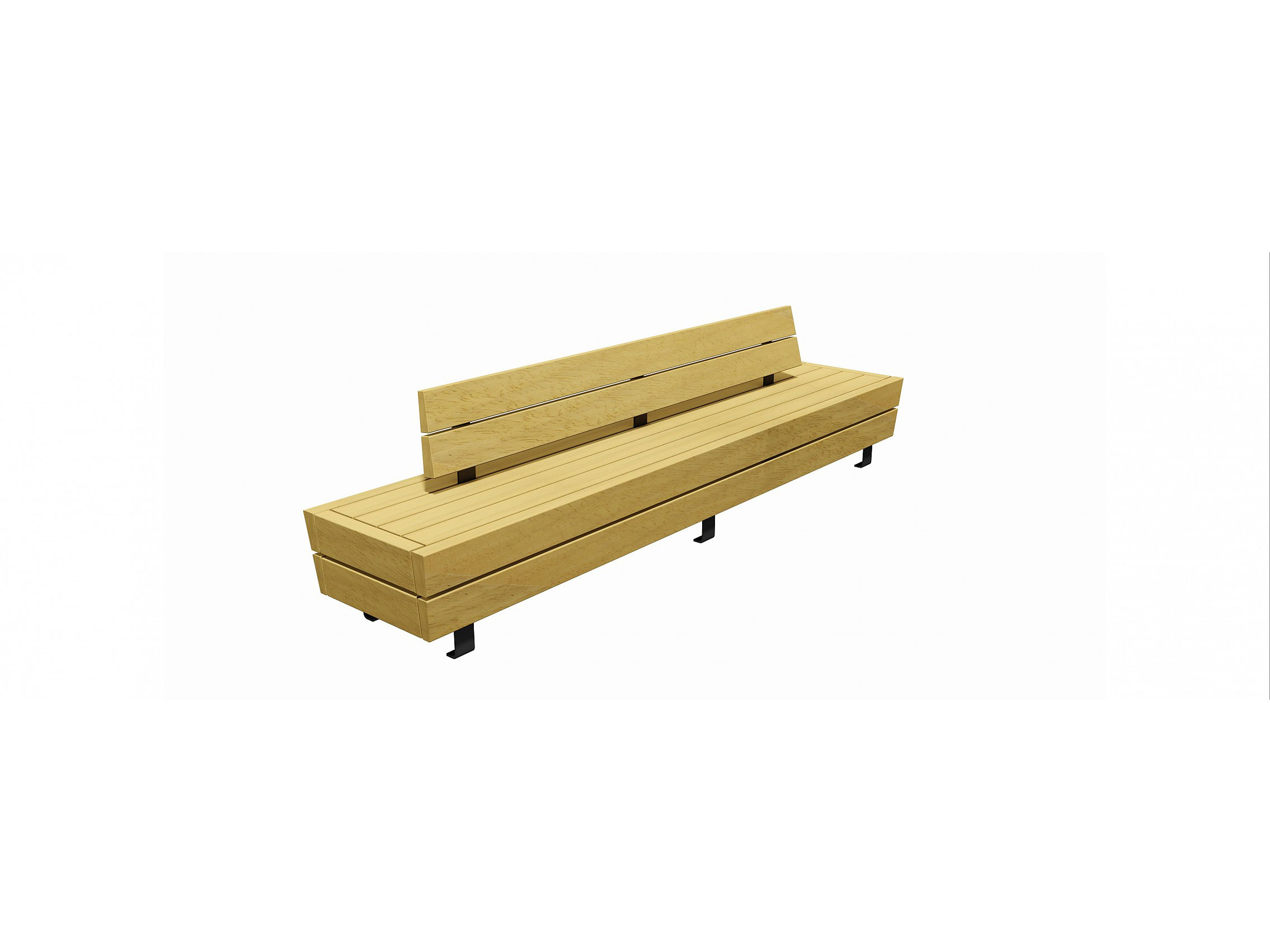 Materiais: Pés estrutura em aço plano galvanizado a quente com 10x80mm. Assento em ripas de madeira natural com 30x120mm, e laterias em madeira cônica com 60/35x150mm. Encosto em quatro ripas de madeira natural cônica com 60/35x150mm. Revestimento em pó na cor RAL 7016 ou outra à escolha (cores especiais ou metálicas podem ter acréscimo de preço).
