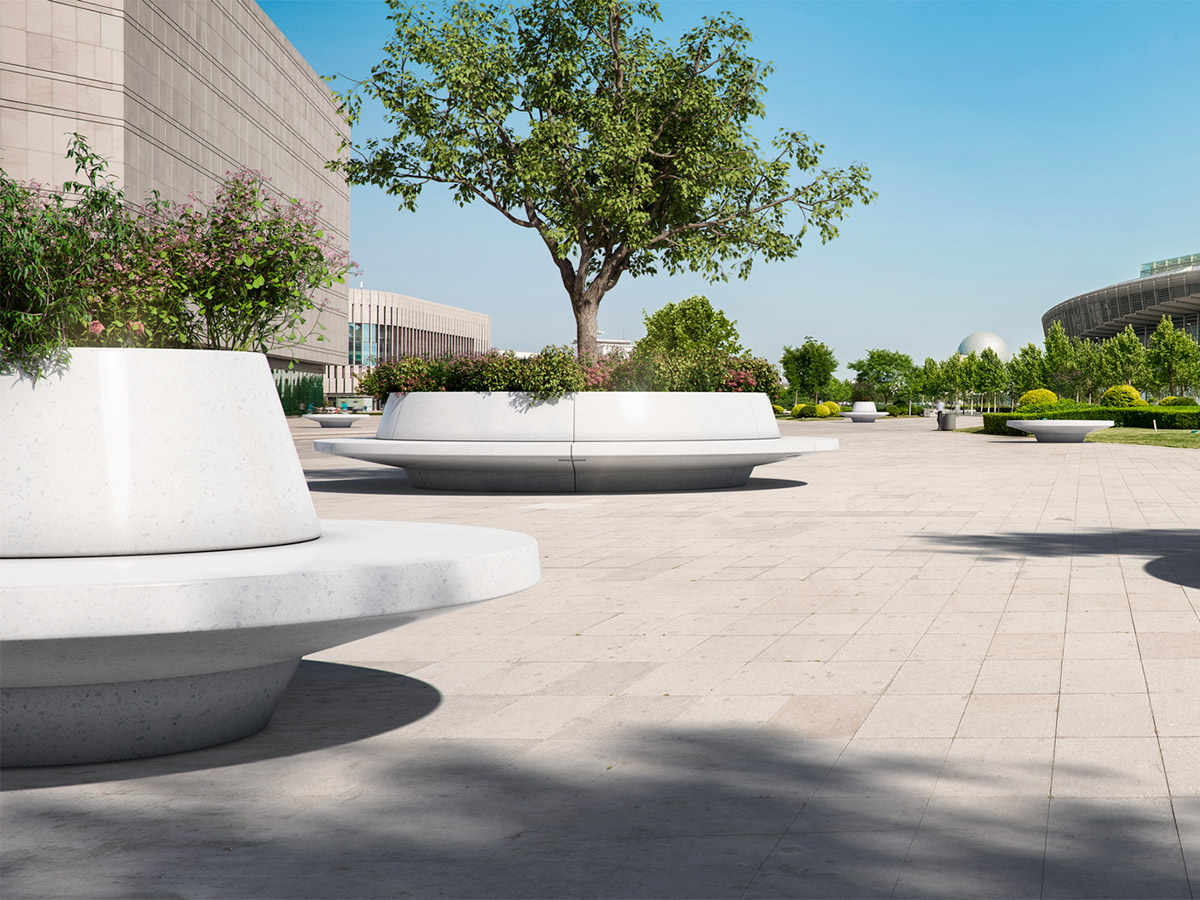 Banco composto por assento em forma de disco com base cónica, concebido em Granito Reconstituído, material que garante elevada resistência, durabilidade e um acabamento nobre e contemporâneo. Este banco apresenta um design em consola, oferecendo uma silhueta elegante e escultural. No centro do banco integra-se um canteiro circular, que pode funcionar como floreira ou, ser fechado com uma tampa em Granito Reconstituído (incluída no valor). Ideal para espaços públicos contemporâneos, o banco Lidò alia funcionalidade, estética e sustentabilidade.