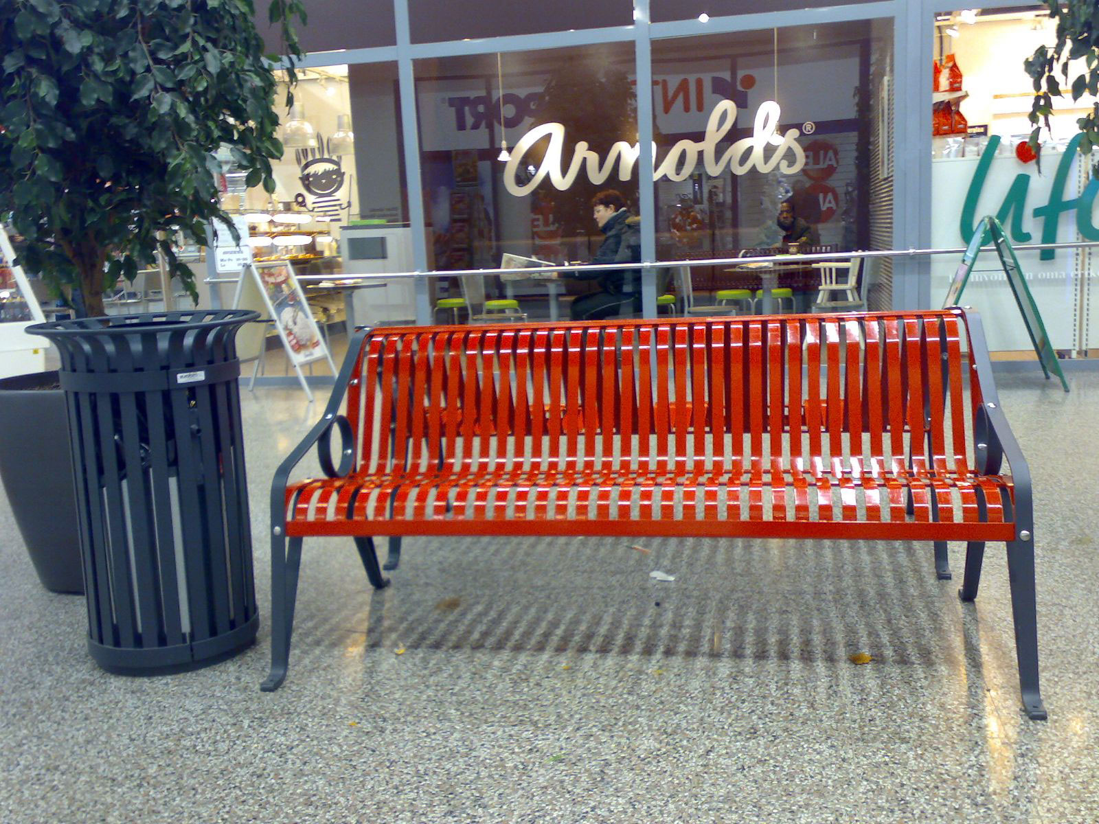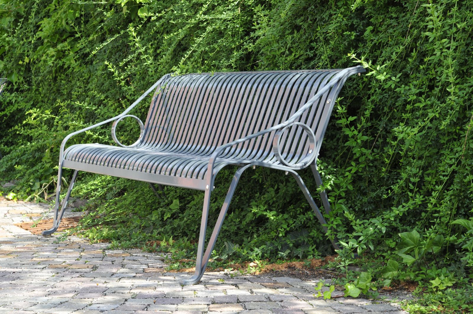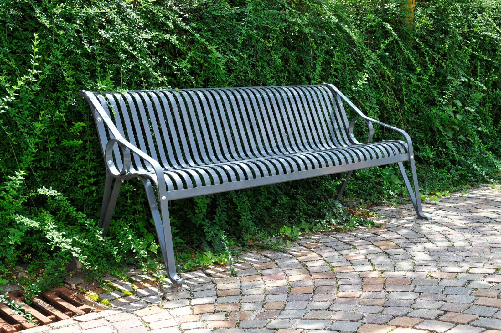 Materiais: Pés, apoio de mãos e estrutura em aço plano galvanizado a quente com 35x8mm, assento e encosto em ferro plano com 30x5mm. Revestimento em pó na cor RAL 7016 ou outra à escolha (cores especiais ou metálicas podem ter acréscimo de preço).