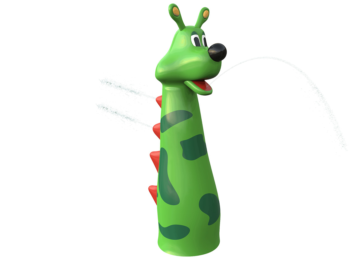 Equipamento temático para parque aquático e/ou para colocar na entrada de piscinas de criança com profundidade máxima de 500mm. Composto por uma cabeça de um animal de fantasia, inspirado na lenda de “Loch Ness”, com diversos jatos de água. Equipamento fabricado na Europa, de acordo com as Normas Europeias EN 1069, 1176, 13451 e 17232, certificado pela TUV.