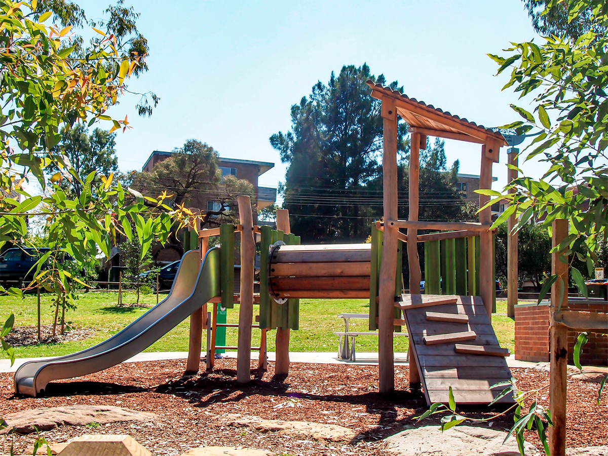 Centro de actividades, em madeira de robínia, composto por 1 torre com telhado, com guardas coloridas e com plataforma a 0,97m de altura, 1 rampa de acesso com suportes para trepar e escalar, com 0,97m de altura, 1 túnel, 1 torre sem telhado com 1 plataforma triangular a 0,97m de altura, com guardas coloridas, sem telhado, 1 escada de acesso e 1 escorrega a 0,97m de altura. Ideal para escorregar, socializar, atravessar, brincar ao “faz de conta”, rastejar, esconder e trepar.