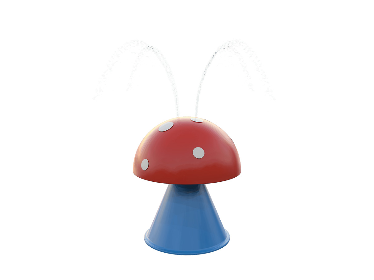 Equipamento temático para spray park ou para colocar em piscina de criança com profundidade máxima de 300mm. Composto por um poste cónico com uma estrutura semiesférica no topo com a forma de um cogumelo colorido. Equipamento fabricado na Europa, de acordo com as Normas Europeias EN 1069, 1176, 13451 e 17232, certificado pela TUV.
