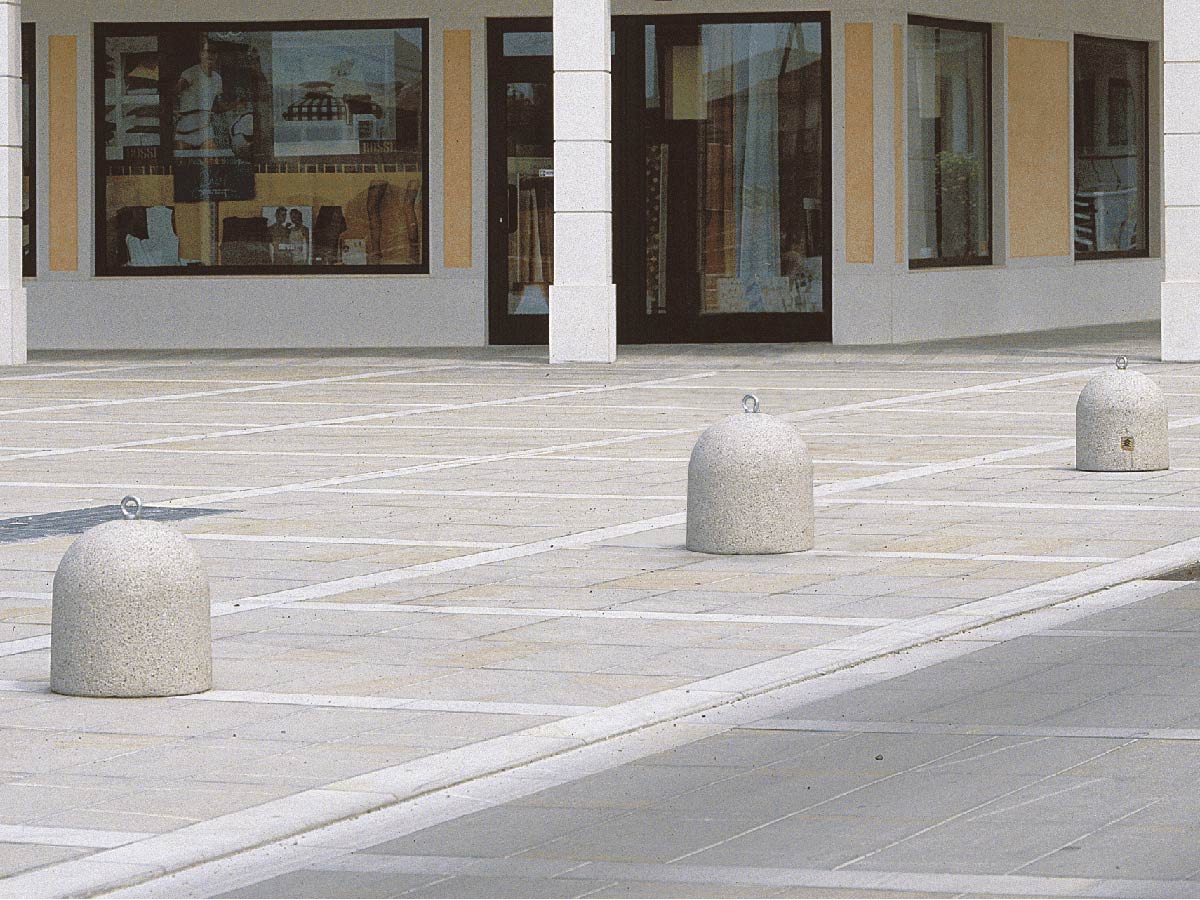 Dissuasor monolítico, de secção circular, modelo TIP, composto por uma base em pedras de prestígio reconstituídas, cor à escolha (Bianco Carrara, Giallo Mori, Veneziano, Rosso Verona, Porfido, Nero Ebano ou Botticino), e um olhal para movimentação ou passagem de uma possível corrente. As superfícies de betão aparente são totalmente jateadas e tratadas com tintas transparentes anti-degradação e, mediante pedido e acréscimo de preço, com produtos anti-graffiti. Todas as arestas são arredondadas ou rombas. A base está dotada de armadura própria equipada com casquilhos para fixação do olhal.