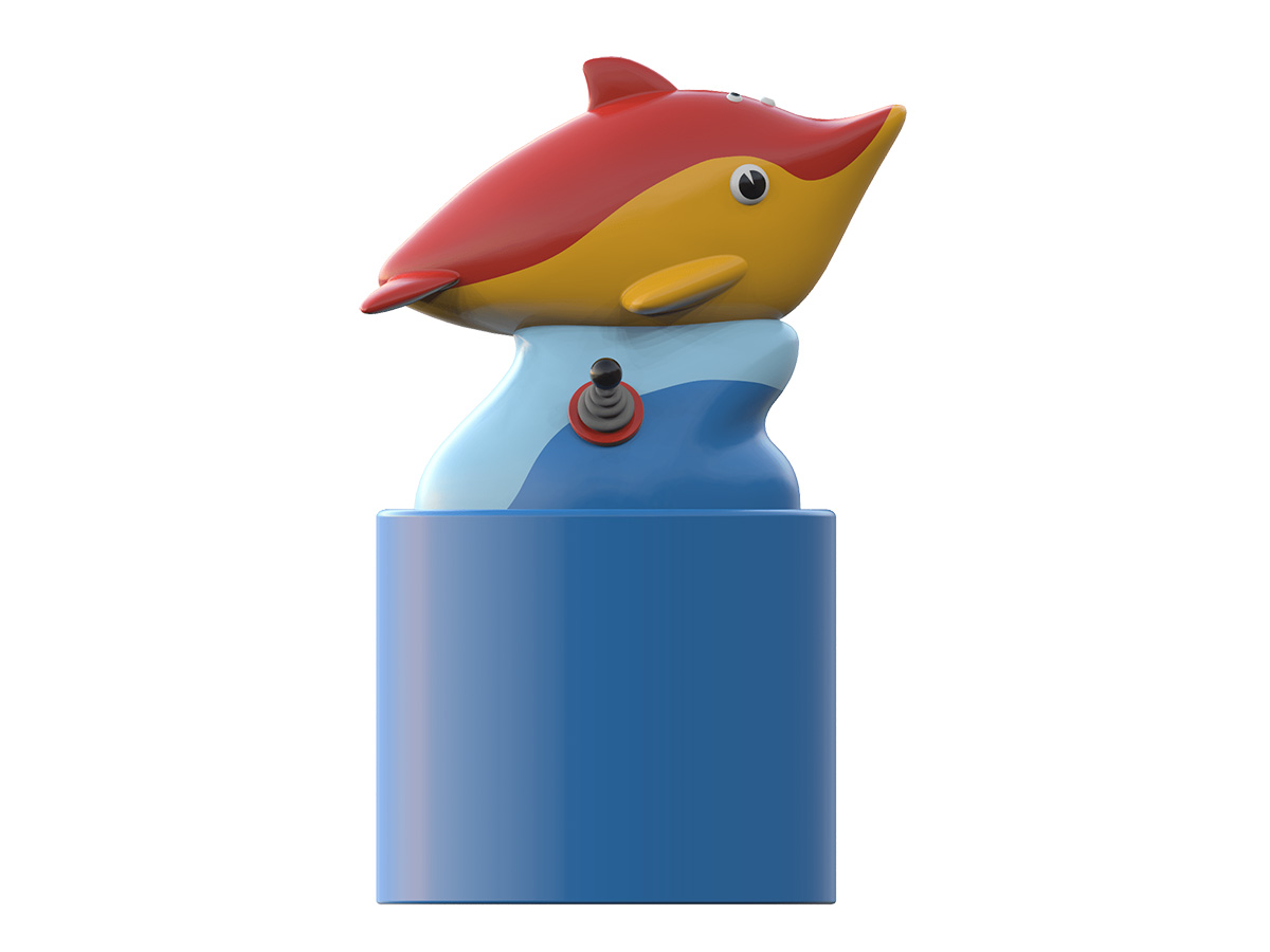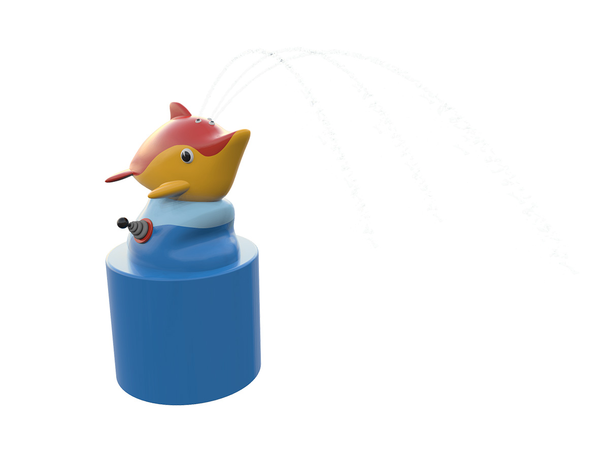 Equipamento aquático para spray park ou para colocar na entrada de piscinas de criança com profundidade mínima de 100mm e máxima de 500mm. Composto por uma figura de um cilindro com uma rocha e um golfinho no topo, com bomba manual. Bombeie o mais rápido possível para acionar os jatos de água que saem pela boca e nariz do golfinho. Equipamento fabricado na Europa, de acordo com as Normas Europeias EN 1069, 1176, 13451 e 17232, certificado pela TUV.