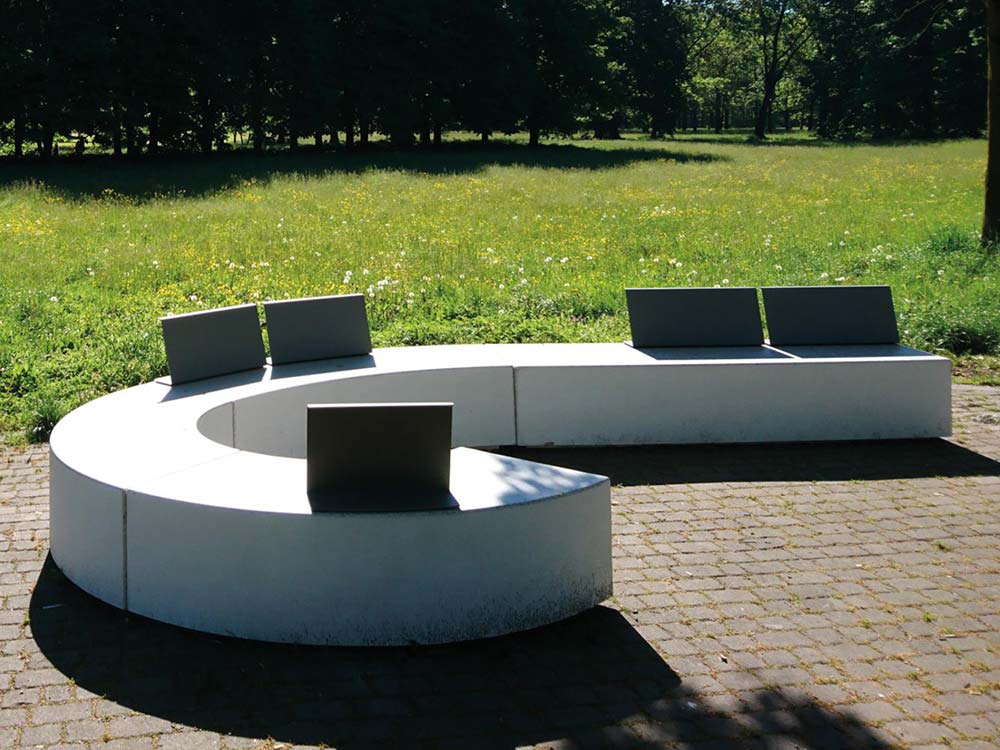 Banco monolítico modular curvo com Raio de 600mm, sem encosto, fabricado em HPC (High Performance Concrete), parcialmente esvaziado no interior para reduzir o peso, com recesso na base. O banco pode ser instalado individualmente ou em composição com outros modelos da mesma linha. Sem fixação ao solo, autoportante. Cor à escolha do cliente. Possibilidade de adicionar iluminação LED (ref.ª PMT 1980106, encomendado à parte, não incluído no valor).