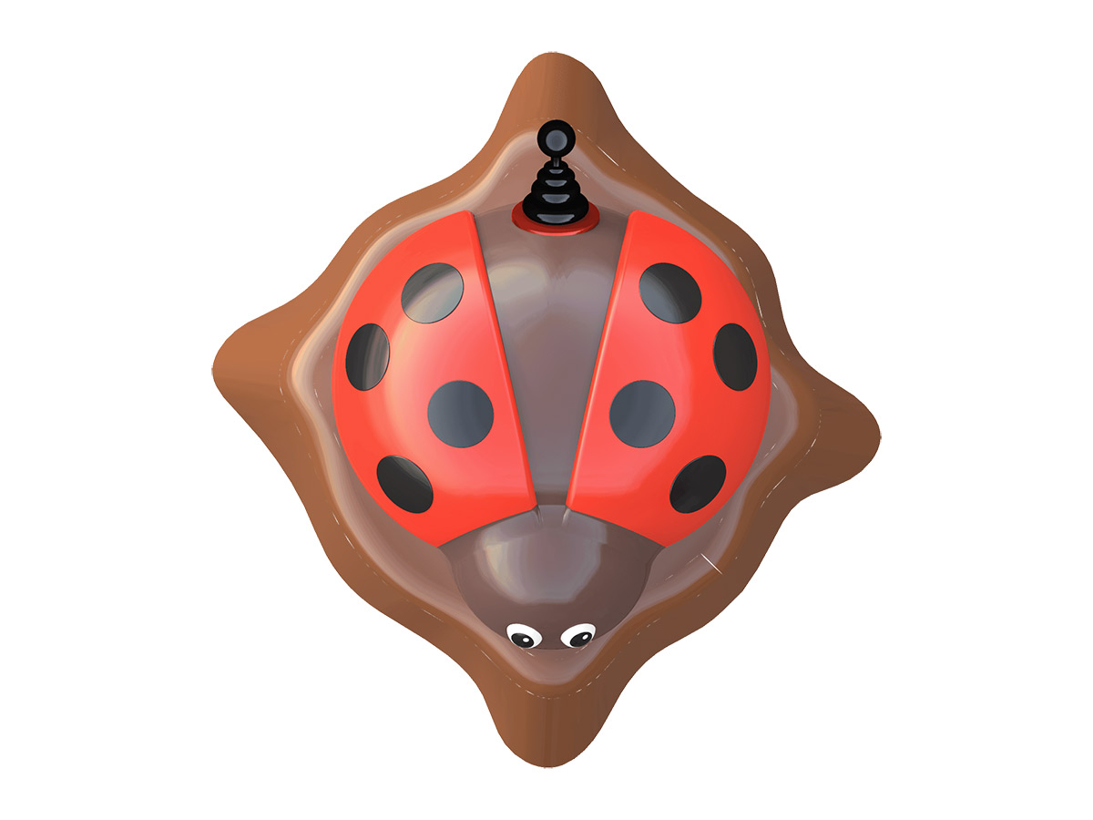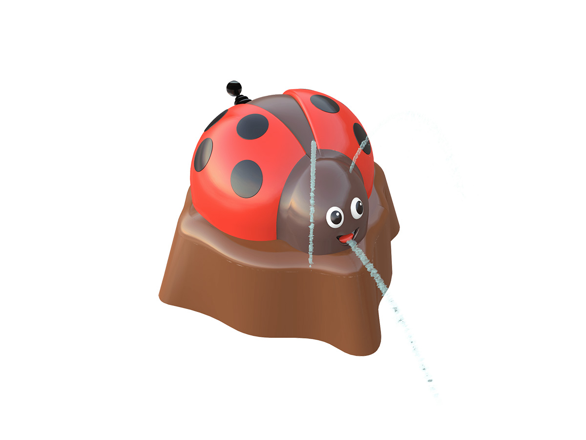 Equipamento aquático para spray park ou para colocar na entrada de piscinas de criança com profundidade mínima de 100mm e máxima de 240mm. Composto por uma figura de um tronco com uma joaninha no tronco, com bomba manual. Bombeie o mais rápido possível para acionar um jato de água que sai pela boca da joaninha e pelo tronco. Equipamento fabricado na Europa, de acordo com as Normas Europeias EN 1069, 1176, 13451 e 17232, certificado pela TUV.