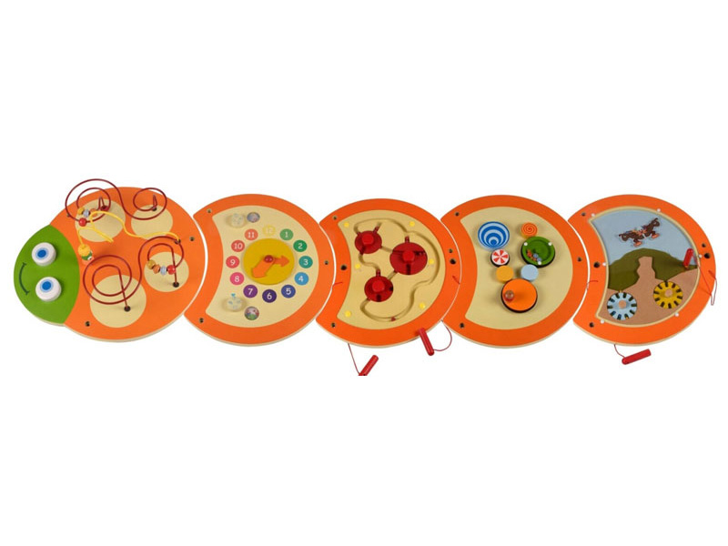 Módulo de parede leve e seguro, fixo na parede com parafusos, absolutamente seguro, concebido para uso profissional. Construção robusta e sólida feita de MDF (Medium Density MDF), sem peças móveis, nada pode ser tirado, ou mesmo engolido. Higiénico, fácil de limpar e desinfectável. Sistema com vários módulos que formam uma comprida minhoca.