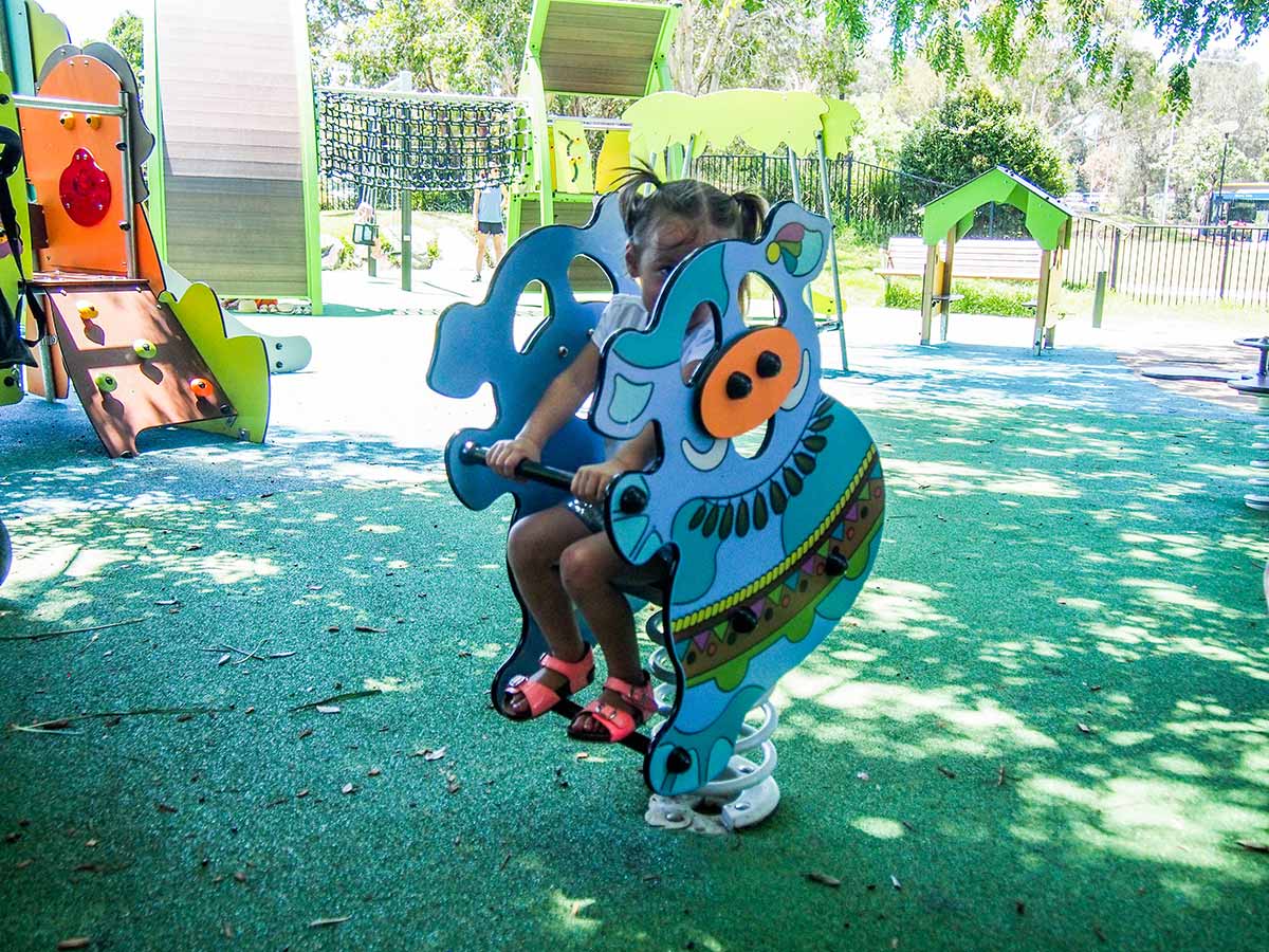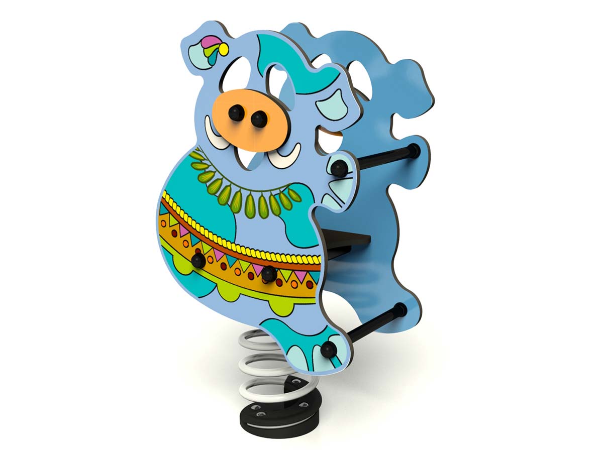 Boneco de mola inclusivo com a forma tridimensional de um porco, com decoração gráfica especial GG Amazone. Ideal para oscilar, socializar e equilibrar.