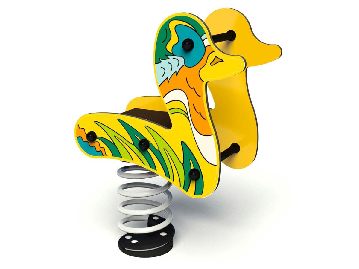 Boneco de mola inclusivo com a forma tridimensional de um pato, com decoração gráfica especial GG Amazone. Ideal para oscilar, socializar e equilibrar.
