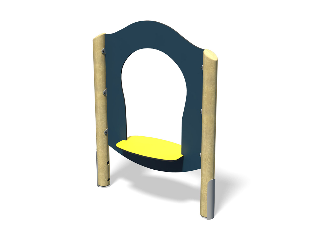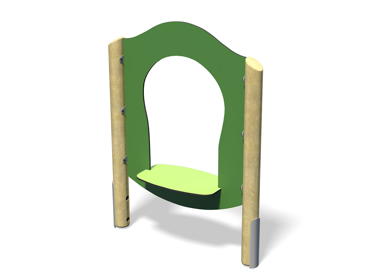 Materiais: Postes de madeira laminada de alta qualidade, redondos, de pinho de crescimento extremamente lento, retirado de florestas totalmente sustentáveis com acreditação FSC ou PEFC, com secções produzidas de acordo com a norma EN 386: 2001, bordas salientes acabadas com um raio maquinado para conferir um acabamento suave e sem lascas de acordo com a EN 1176, e sujeitos a tratamento a alta pressão de acordo com as EN 351-1 e EN 335-2, isento de crómio e arsénio. Painel em laminado compacto, de 12 mm de espessura, extremamente resistente ao vandalismo, ao desgaste, a produtos químicos, ao fogo, com protecção UV e que não enferruja.