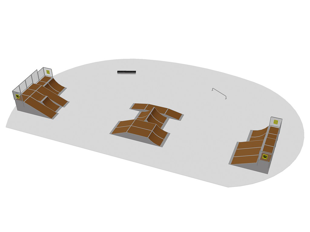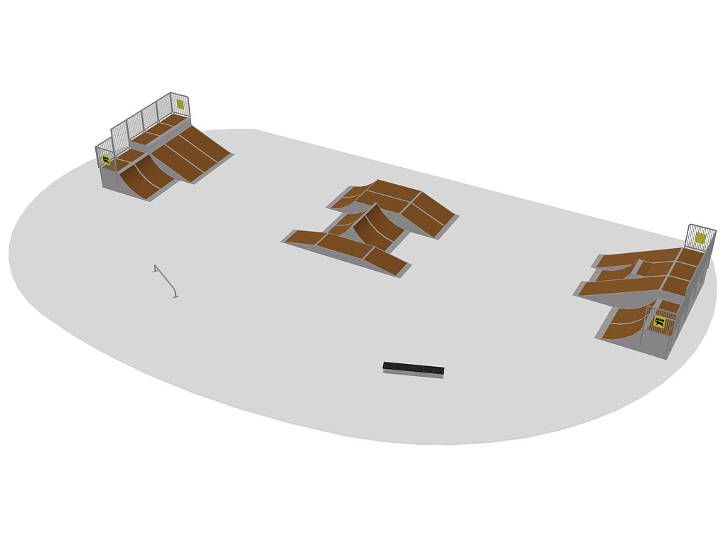 Parque de skates, patins e bicicletas polivalente e modular, projetado com os detalhes e pormenores de engenharia exigidos pelas mais rígidas regras de segurança mundiais. Desenvolvido de forma a oferecer a combinação perfeita de rampas e um bom fluxo, tanto para utilizadores com pouca ou nenhuma experiência, como para utilizadores experientes. Composto pelos seguintes módulos: 1 combinação Funbox com Funbox 0,4M flat – flat, Large streetspine, L- Funbox 0,8M flat – fly; Streetbench; Standard grindrail; 1,1M Quarterpipe; 1,5M Flat bank; 1,5M Kickerramp; e 1,5M Piano.