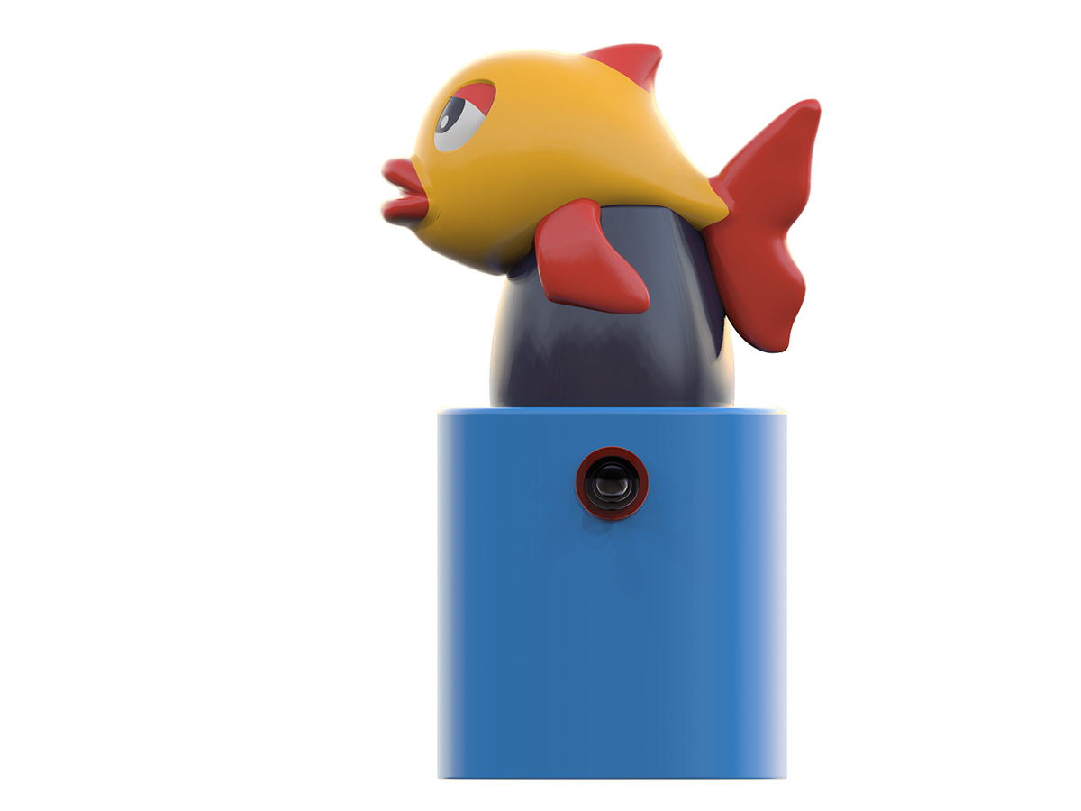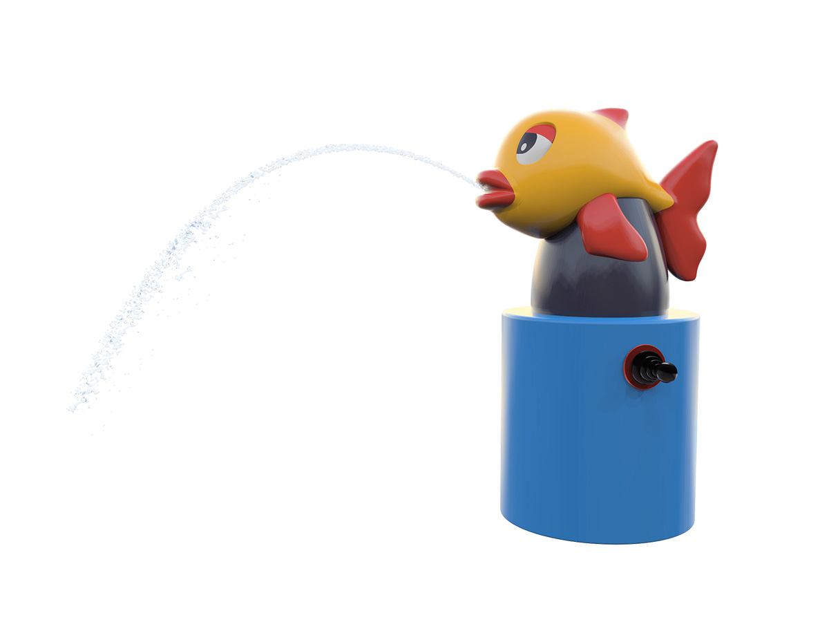 Spray de chão para spray park ou para colocar na entrada de piscinas de criança com profundidade mínima de 100mm e máxima de 290mm. Composto por uma figura de um peixe colorido apoiado numa base cilíndrica, com bomba manual. Bombeie o mais rápido possível para acionar os jatos de água que saem pela boca do peixe. Equipamento fabricado na Europa, de acordo com as Normas Europeias EN 1069, 1176, 13451 e 17232, certificado pela TUV.