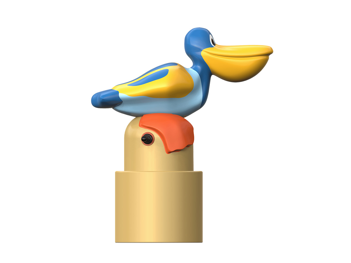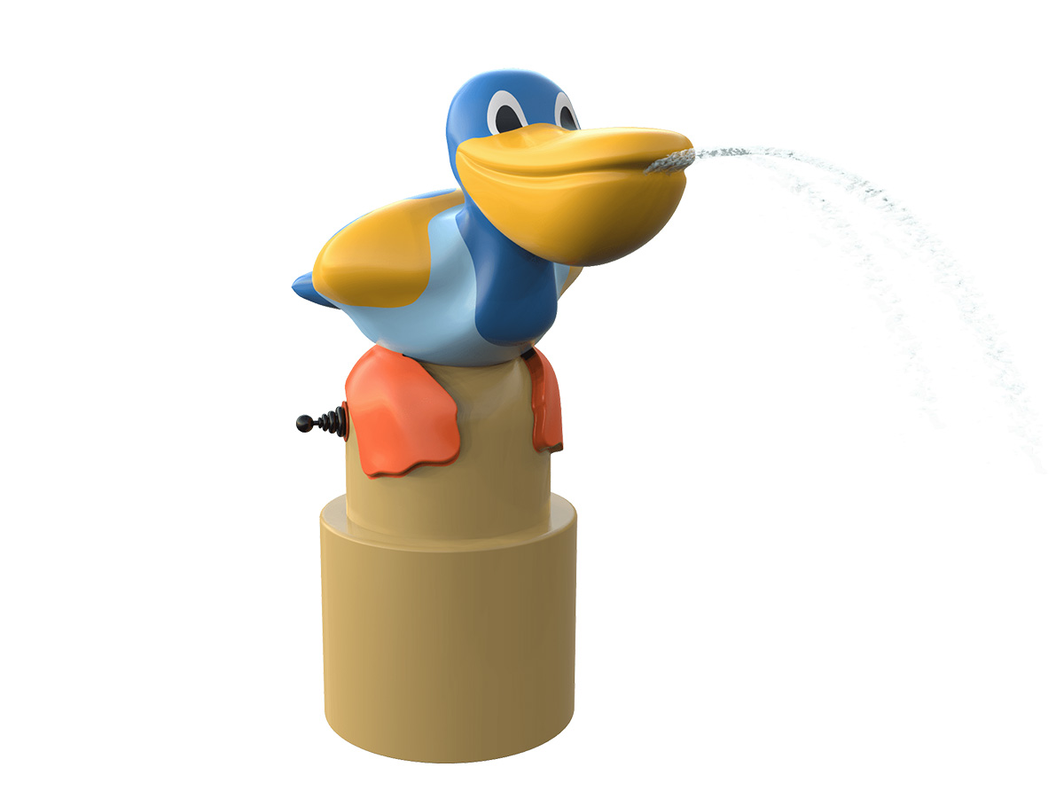 Equipamento aquático para spray park ou para colocar na entrada de piscinas de criança com profundidade mínima de 100mm e máxima de 640mm. Composto por uma figura de um pelicano apoiado numa base com bomba manual. Bombeie o mais rápido possível para acionar um jato de água pela boca do pelicano. Equipamento fabricado na Europa, de acordo com as Normas Europeias EN 1069, 1176, 13451 e 17232, certificado pela TUV.