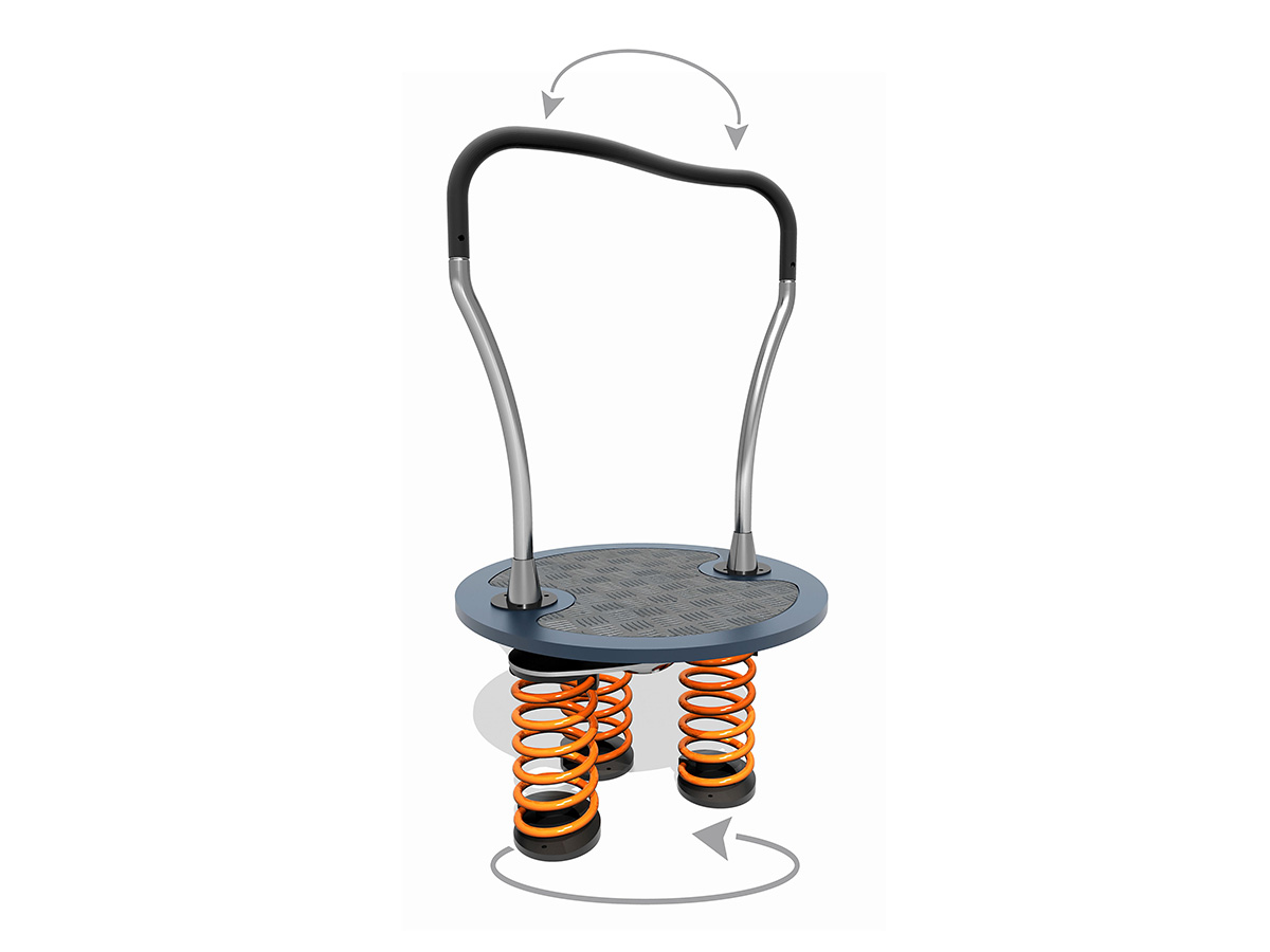 Carrossel inclusivo composto por plataforma rotativa e oscilante, fixada a 3 molas de alta resistência, com uma grande pega central para apoio das mãos, garantindo estabilidade e segurança durante a utilização. Ideal para balançar, oscilar, rodar, socializar e trabalhar o equilíbrio, proporciona estímulos vestibulares e proprioceptivos que contribuem para o desenvolvimento da coordenação motora, da perceção espacial e do fortalecimento muscular. A configuração aberta e acessível permite que crianças e jovens de diferentes idades e capacidades usufruam da atividade, favorecendo a inclusão física, sensorial e cognitiva.