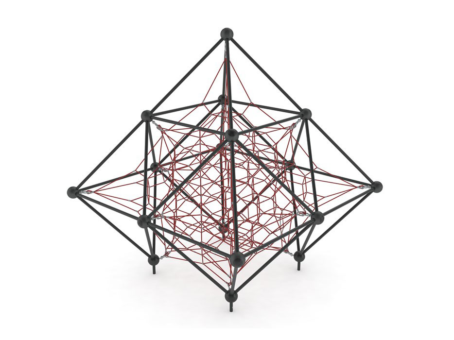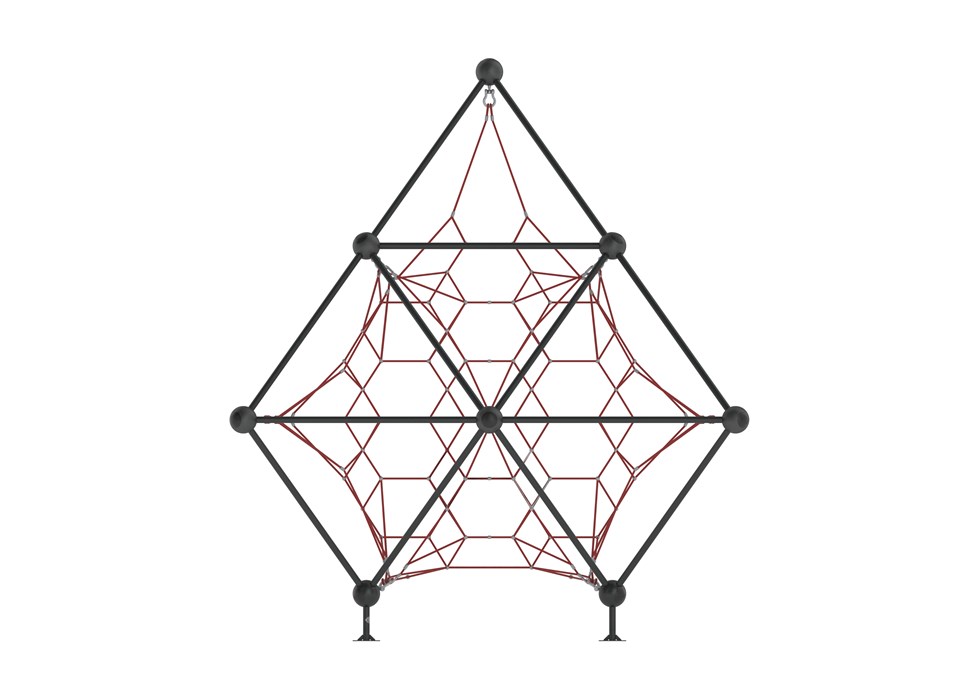 Centro de atividades temático com a forma de uma pirâmide de cordas com estrutura metálica e redes tridimensionais no interior para trepar e atravessar. Ideal para trepar, equilibrar, socializar, dependurar, rastejar e desenvolvimento motor e psicomotor. Cores disponíveis para as partes metálicas: vermelho RAL 3020, azul-esverdeado RAL 5001, azul-pastel RAL 5024, verde Reseda RAL 6011, Cinzento-escuro RAL 7021, Cinzento-claro RAL 7040, ou Castanho RAL 8002. Cores disponíveis para as redes: castanho-claro, cinza, azul, verde, vermelho ou preto.