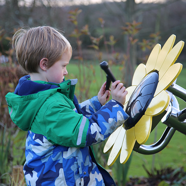 Instrumento musical de exterior temático inspirado na natureza e afinado à escala de dó pigmeu (C-D-Eb-G-Bb-C), uma escala originária da cultura africana, uma forma do modo dórico, entre uma escala menor e uma escala maior. Suave e doce, seu som inspira introspeção e meditação. Composto por um tubo e estrutura de suporte de aço inoxidável e uma flor margarida com um centro preto contendo um pequeno Babel Drum (24 cm) envolto em pétalas de alumínio amarelas. Inclui um conjunto de 2 baquetas à prova de vandalismo, macias e flexíveis, projetadas especificamente para produzir tons deliciosamente suaves. Equipamento inclusivo, possível de ser usado por utilizadores em cadeiras de rodas, e perfeito para estímulo sensorial, cognitivo e musicoterapia.