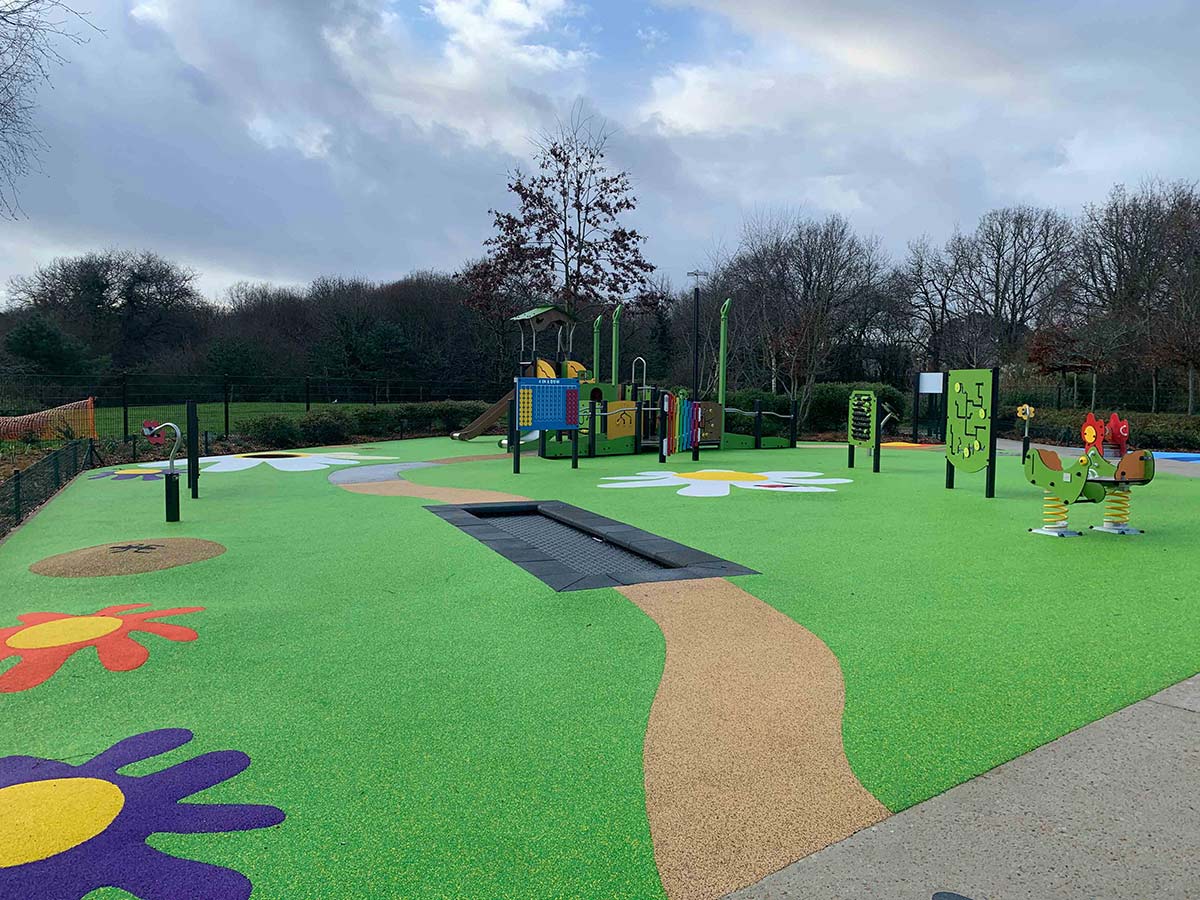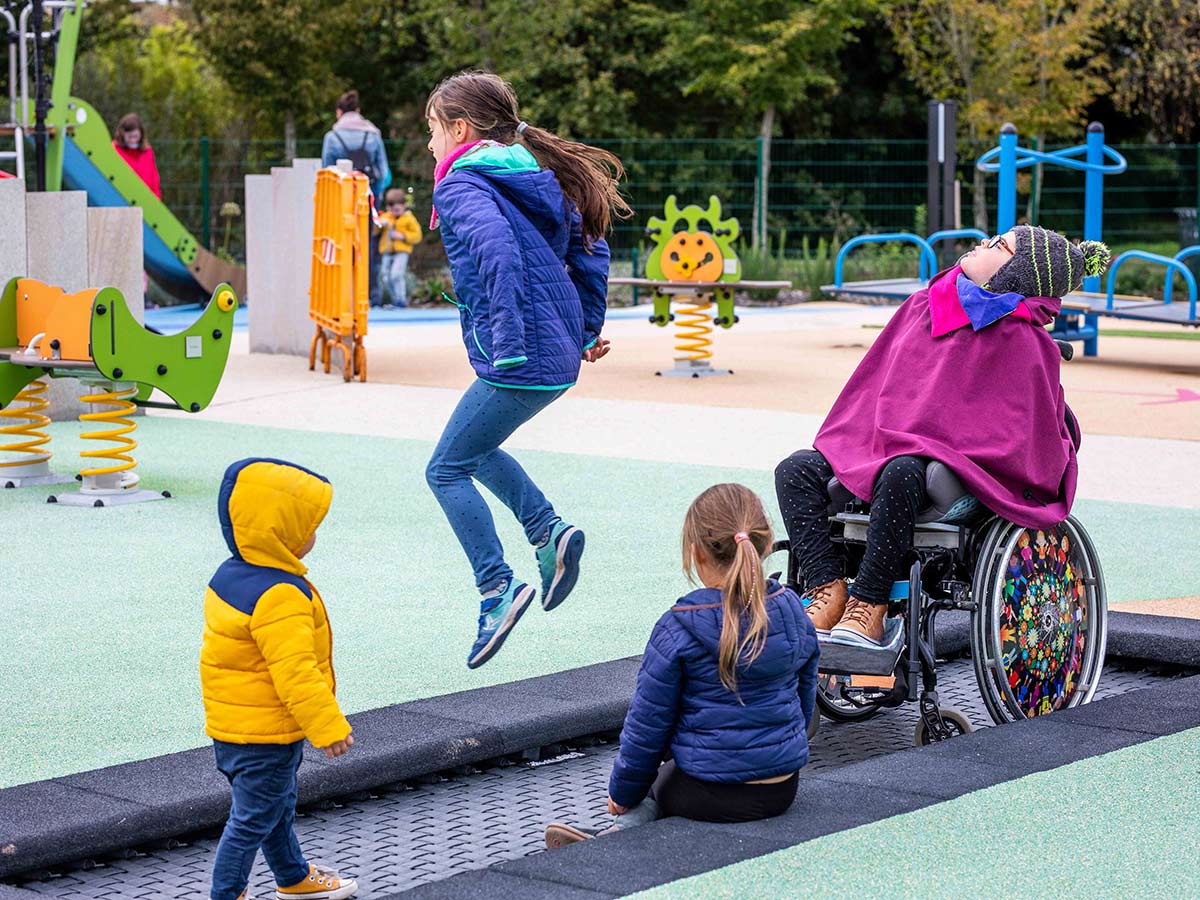 Trampolim retangular de alta resistência, concebido para uso intensivo em parques infantis de acesso livre e não supervisionados, resistente aos raios UV, intempéries e vandalismo. A sua configuração de baixo perfil, com acesso nivelado e proteção perimetral em borracha, garante total acessibilidade, incluindo para utilizadores em cadeira de rodas manuais. Com 366 cm de comprimento útil de salto e 80 molas de aço galvanizado, proporciona um ressalto seguro, limitado a 100 cm de altura, estimulando o sistema vestibular e o sentido proprioceptivo através da ação de impulsão e aterragem controlada, favorecendo o equilíbrio, a coordenação motora, a força muscular e a perceção espacial. O impacto cognitivo e social é igualmente valorizado, criando oportunidades de interação e jogo partilhado. O espaço acima do trampolim deve permanecer livre de qualquer obstáculo até uma altura de 3,50 metros, medida a partir da superfície de ressalto. Apresenta um índice de reparabilidade de 8,73/10, contribuindo para a redução do impacto ambiental. A conceção modular permite a remoção fácil da superfície e das molas para limpeza e manutenção sem desmontar a moldura ou a proteção de impacto, prolongando a sua vida útil e reduzindo o desperdício. Cumpre as normas EN 1176, garantindo segurança, durabilidade e resistência à utilização durante todo o ano.