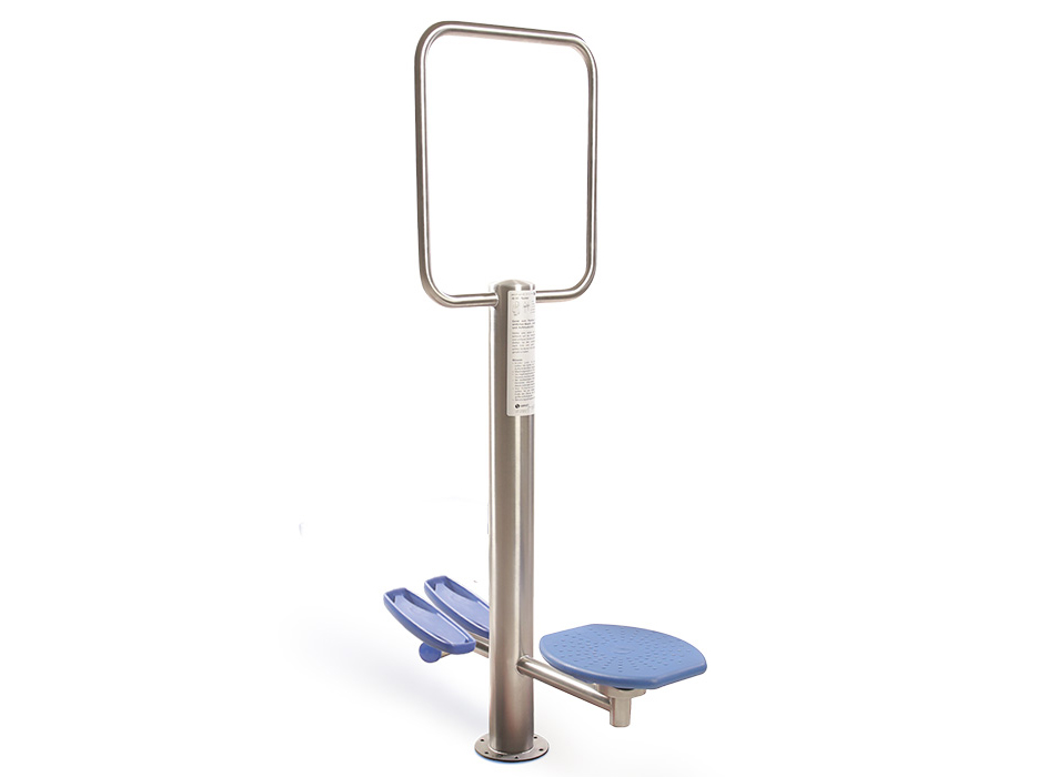 Equipamento para treino dos músculos abdominais, anca, perna e melhoria de mobilidade, coordenação e resistência. Composto por um poste central com anel para apoio de mãos, uma base de rotação e 2 pedaleiras. Coloque-se no disco giratório com as mãos apoiadas na barra. Deverá manter os ombros direitos durante o exercício, alternando movimentos para a esquerda e para a direita, apenas rodando a parte inferior do corpo. Para o efeito de subir escadas, coloque os pés no stepper, agarre-se à barra e comece a andar.